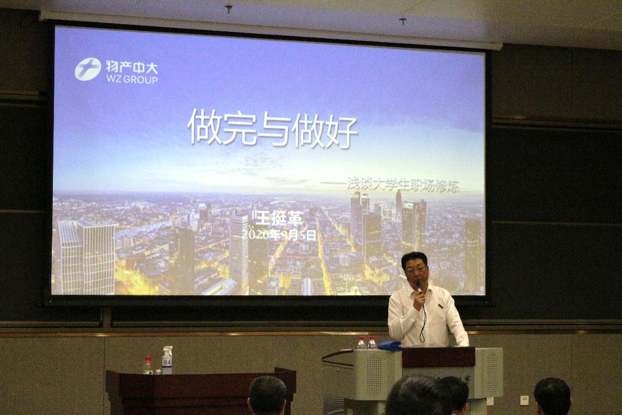 王挺革分享了题为“做完与做好——浅谈大学生职场修炼”主题讲座,深入浅出地阐述了从“学校人”到“职场人”的蜕变过程,并且谈论了自己心中优秀员工应该具有的品质。他鼓励在场同学们要爱学习、善思考、懂敬畏、勇尝试,并为同学们今后步入职场的事业发展提供了宝贵的建议。