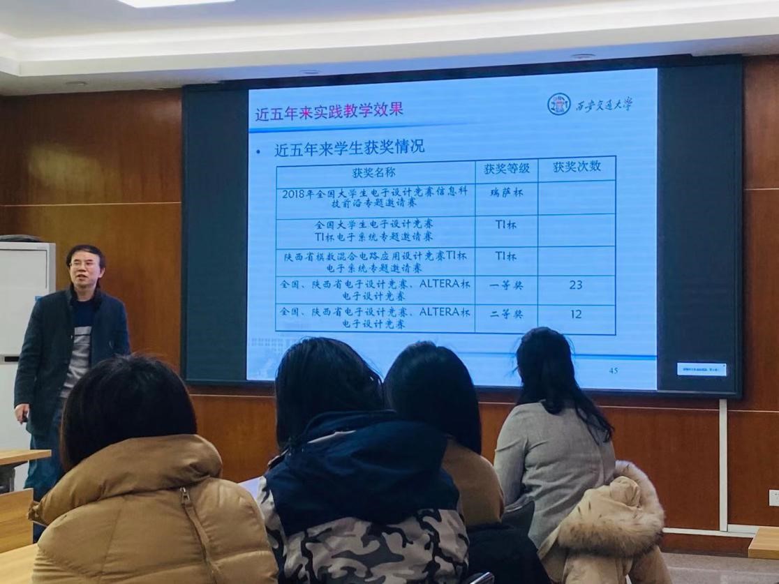 紧接着电信学部罗新民教授介绍了“电子信息类专业实践教学课程体系设计与实践”,电子信息类专业课程体系充分融合了把科研资源引入人才培养全过程,用科研提升教学,用教学支撑科研;强化实践教育,提高学生实践能力;充分利用小学期,凸显创新能力培养。