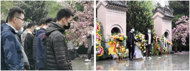 硕0046党支部同南洋书院学生第四党支部、电类011至014团支部成员赴西安烈士陵园开展清明缅怀先烈主题学习活动。值建党百年之际,在清明之时,交大本硕学子开展了一场意义深刻的主题教育,一同学习革命故事,缅怀革命前辈,弘扬英雄主义光荣传统。