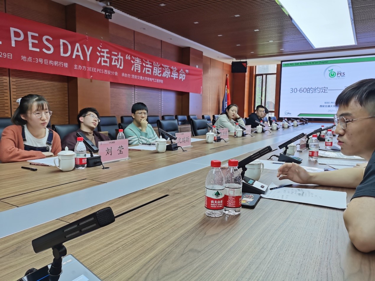 会议伊始,同学们集体观看视频,学习了习近平总书记于2020年4月22日来交大视察时的讲话以及在第七十五届联合国大会一般性辩论上发表的重要讲话。习总书记在讲话中提到,中国“二氧化碳排放力争于2030年前达到峰值,努力争取2060年前实现碳中和”。视频的最后,联合国常务副秘书长阿明娜·穆罕默德女士对中国碳达峰碳中和成果表示高度的认可与支持。随后,主持人李加才向大家介绍了IEEE PES和PES DAY以及本次沙龙活动的主旨。各位同学围绕“双碳”目标,结合自身科研学习,展开了深入的交流和热烈的讨论。