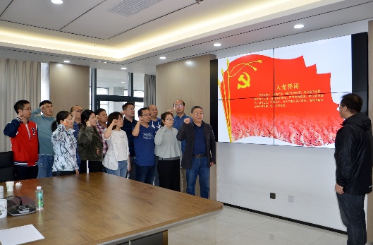 分党委书记梁得亮老师强调围绕中心工作推进党的建设,学生应当抓好科研学习,老师抓好教学和科研工作,从做好中心工作出发,开展党建工作。会议还讨论了褚帅君同志的入党申请,经过支部的审查,电机党支部同意褚帅君同志的入党申请。会后全体党员同志在支部书记王曙鸿老师的带领下重温了入党誓词。