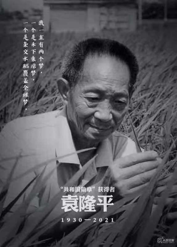 2021年5月22日13时07分,“杂交水稻之父”、“共和国勋章”获得者、中国工程院院士袁隆平因病医治无效,在长沙与世长辞,享年91岁。