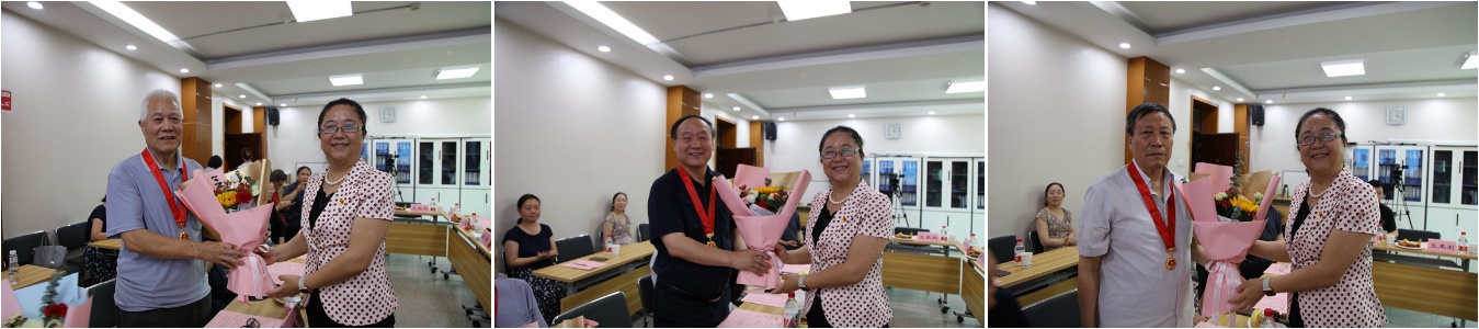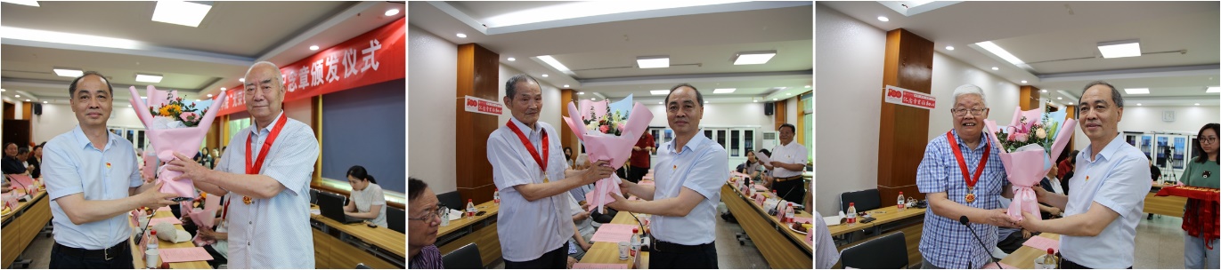 纪念章颁发仪式上,荣命哲副校长,别朝红院长、梁得亮书记和宋杰副书记亲手为获得纪念章的老党员佩戴纪念章,并分别代表学校及学院对于所有获得纪念章的党员同志表示热烈祝贺和崇高敬意。