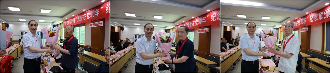 “光荣在党50年”纪念章颁发仪式分别在西安和上海两地举行。获颁纪念章的老党员代表,校党委常委、副校长荣命哲,校党委常委、黄瓜视频