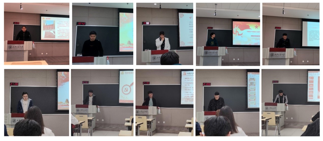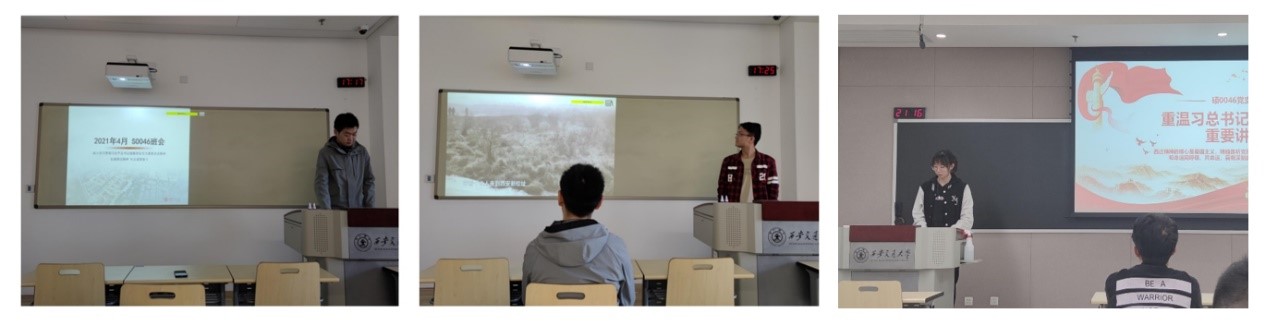 硕0046党支部认真贯彻习近平总书记党史学习教育动员大会讲话精神,落实“三会一课”制度,以支部书记主讲、党员轮讲的形式,围绕历届党代会开展党课学习,每名支部成员分别担任一届党代会的领学人,逐届回忆一大至十九大以来中国共产党艰辛坎坷的发展历程,渐行渐感,明确党在各个历史时期为走好中国特色社会主义发展道路付出的不懈努力。