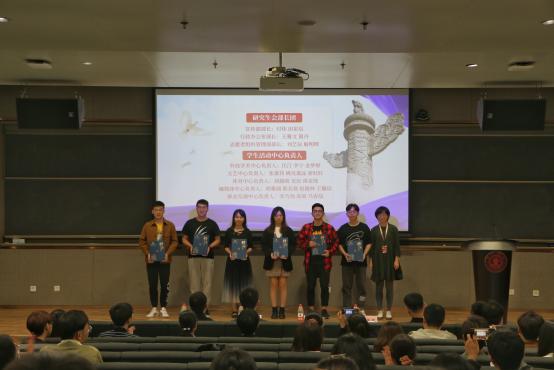 2021届研究生会主席团、部长团,学生活动中心主任团、负责人,常代会主任团、负责人颁发聘书。梁人之老师为研究生会执行主席陈叶,主席团成员熊赋志、陈锦坤,学生活动中心秘书长张睿哲,科技学术中心主任马萌,文艺中心主任隋缘,体育中心主任叶洵知,融媒体中心主任成智,职业发展中心主任张玮颁发聘书,程亚龙老师为研究生会部长团颁发聘书,刘涛老师为各学生活动中心负责人颁发聘书,申超领为常代会主任团和负责人颁发聘书。