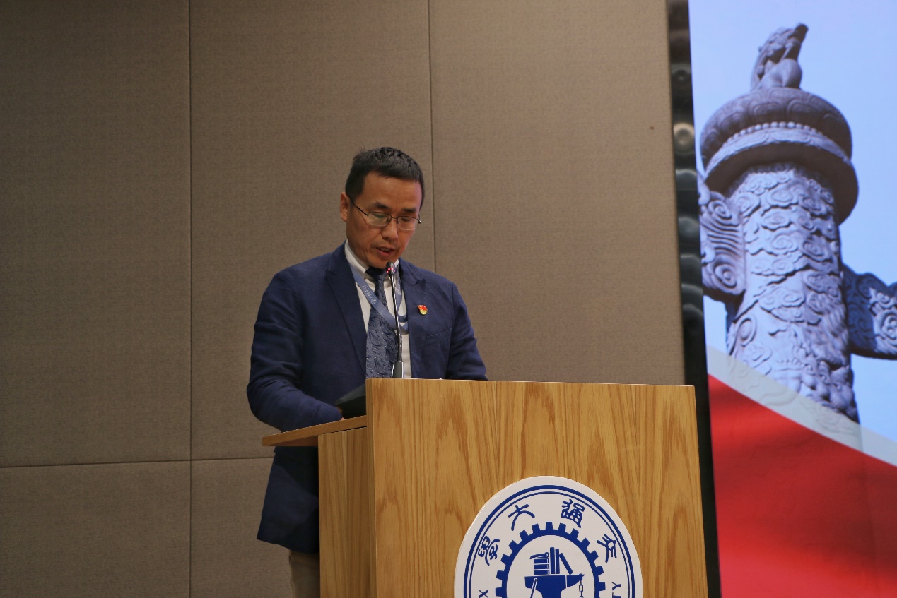 机械学院研分会代表弓瑨向大会的召开表示祝贺,希望两院研会继续深化合作交流,架起学科交叉融合桥梁,共同团结引领两院青年学子勇担新使命,争做新青年。