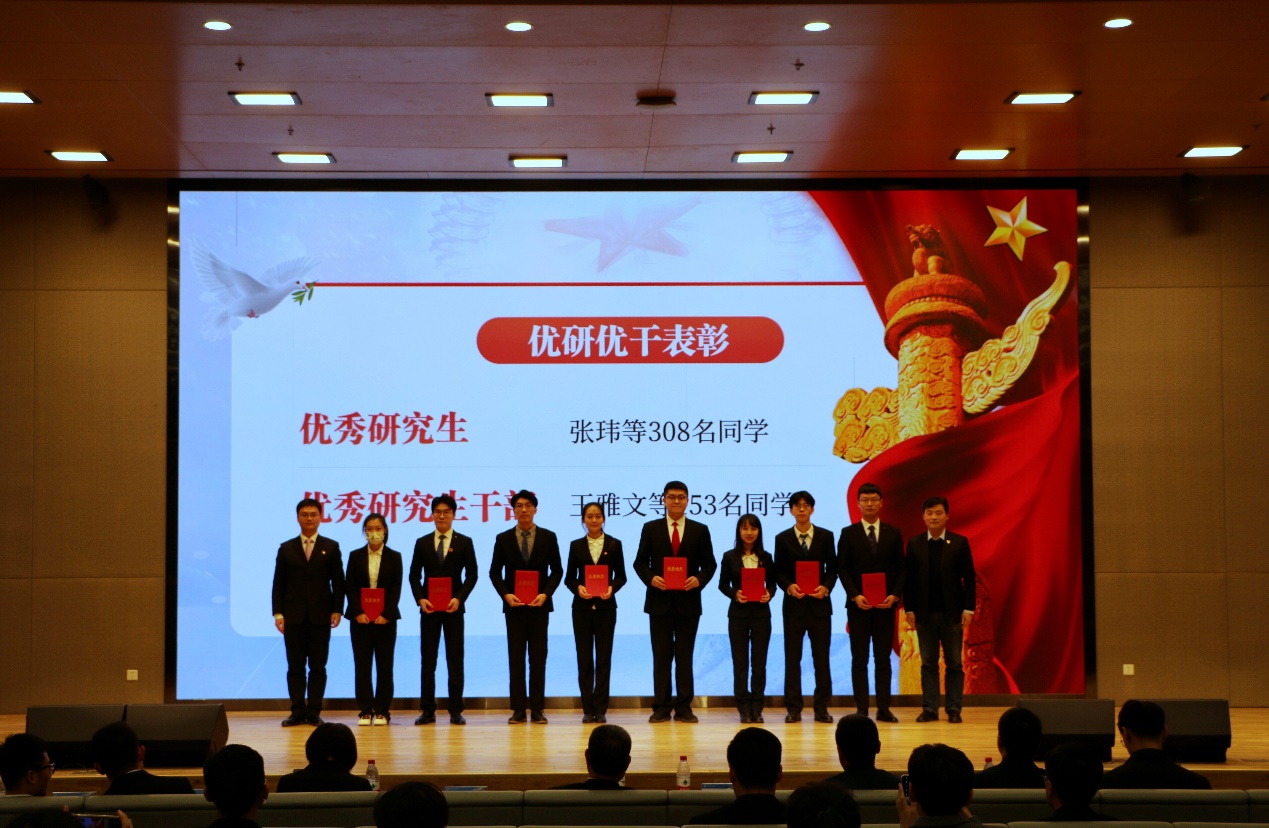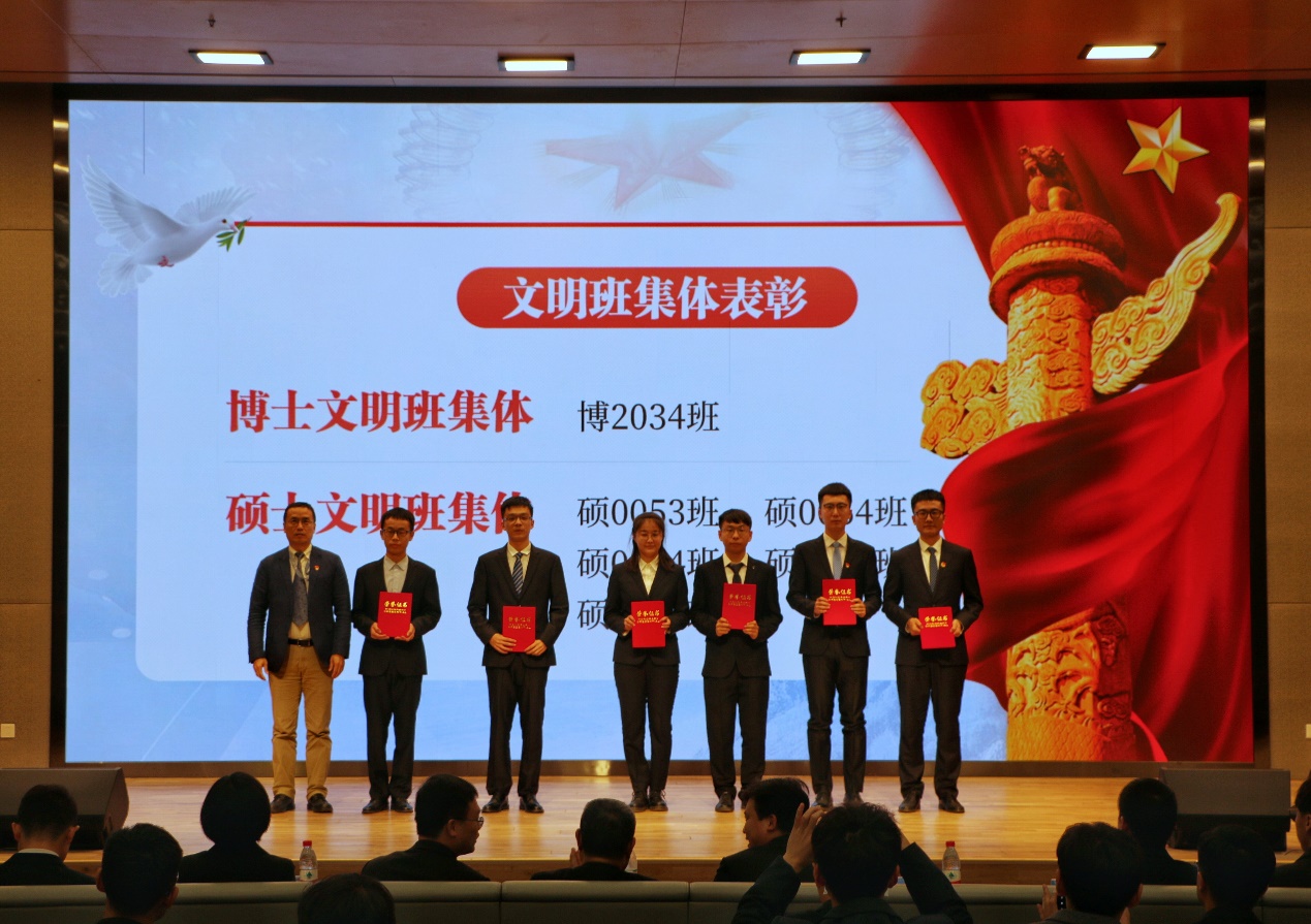 为了全面贯彻落实大会精神,积极推动各项研究生工作的开展,引导广大同学自觉成长为新时代中国特色社会主义事业的合格建设者和可靠接班人,大会对获得“优秀研究生”、“优秀研究生干部”、“文明班集体”、“研究生标兵”荣誉称号的研究生同学进行了表彰。