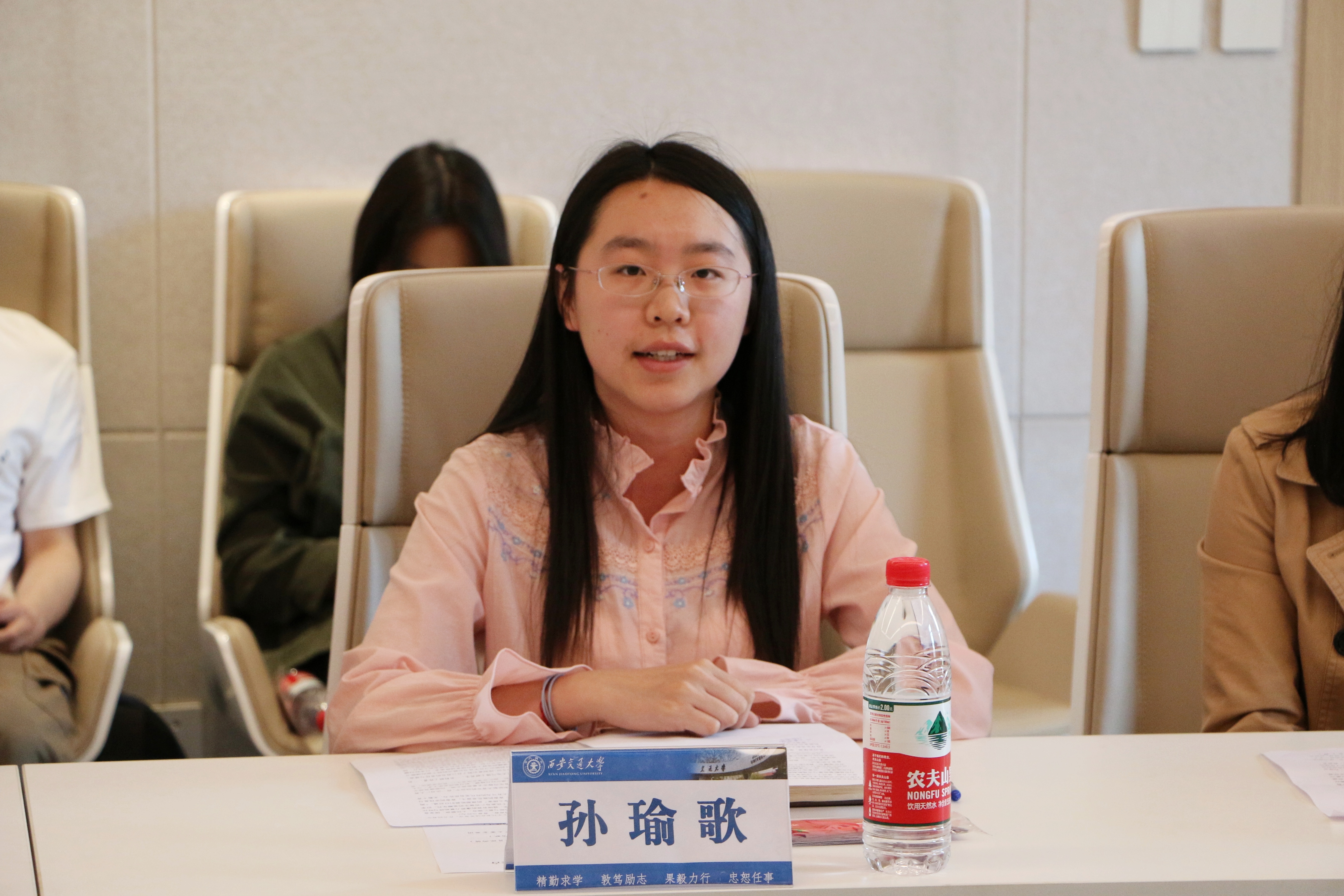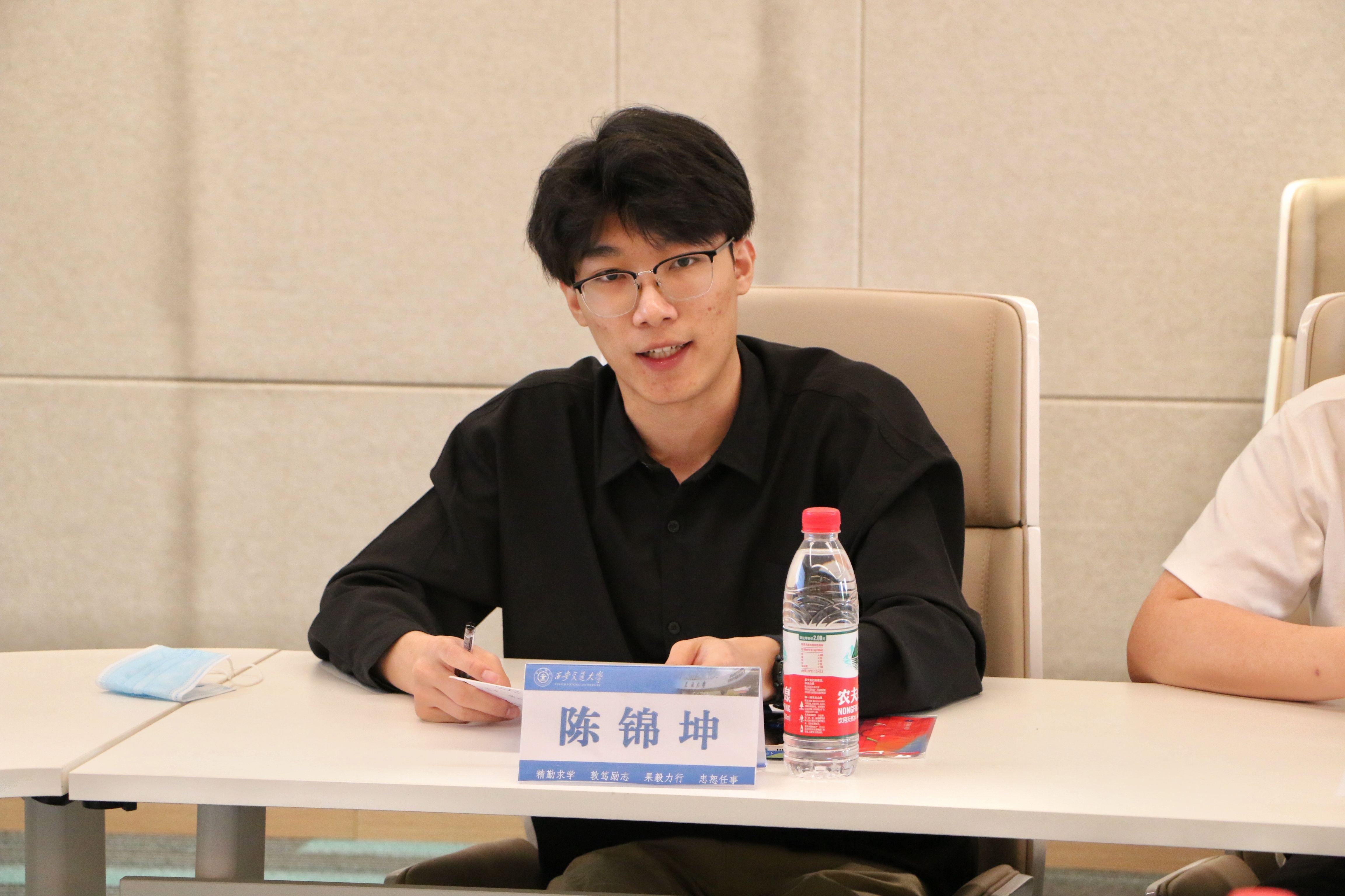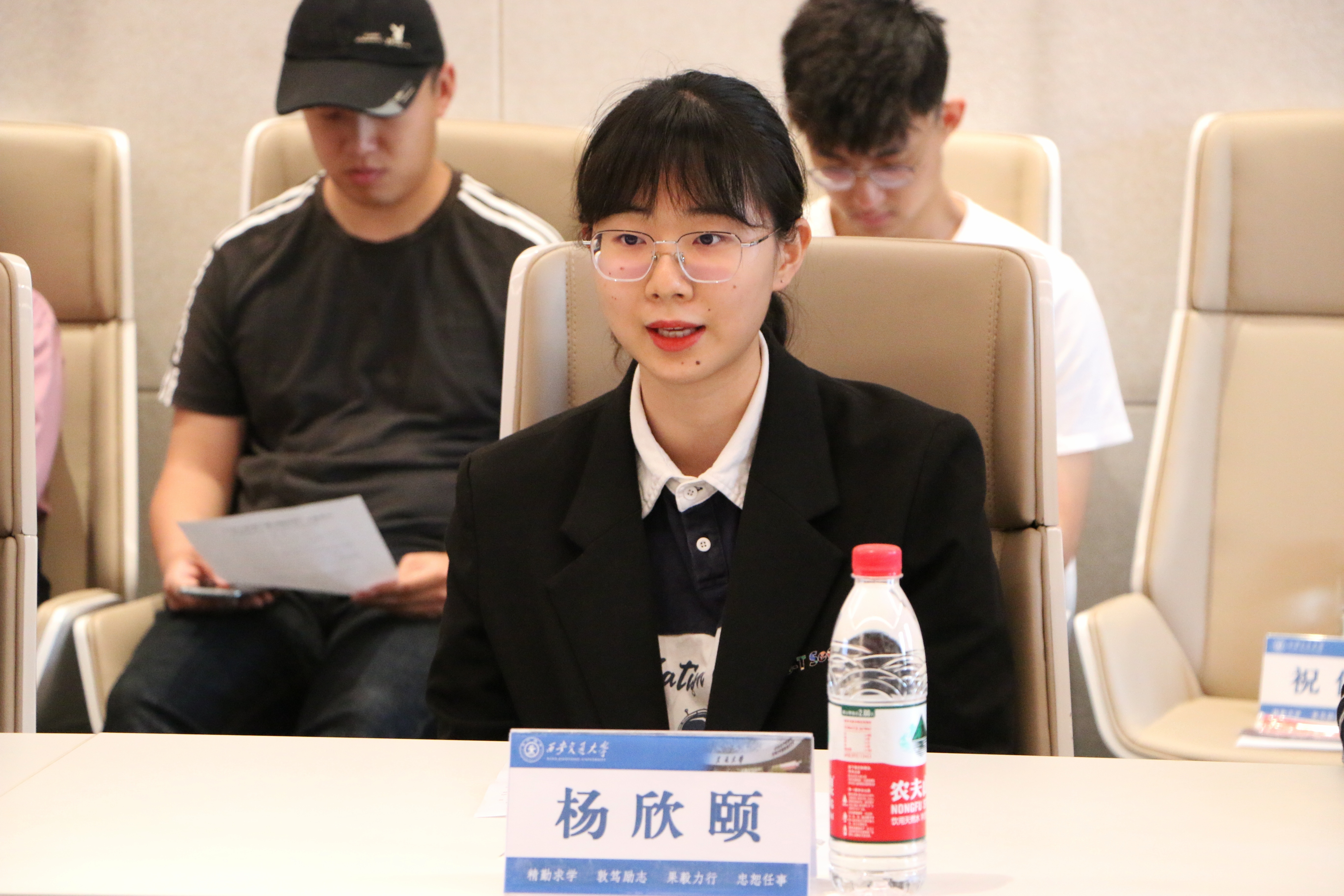 国家奖学金获得者孙瑜歌从博士研究生科研工作角度出发,畅谈在科研过程中体会到的责任和使命,青年学子应当坚定前进信心,以“青春之我”投身党和人民事业发展实践,努力成为堪当民族复兴大任的时代新人;“互联网+”创新创业大赛金奖团队成员陈锦坤认为要扎根西部,抓住创新港建设的新机遇,敢闯敢创,积极参与创新创业实践,这既是对时代潮流的准确把握,也是对研究方向的有效推动;院研究生会主席团陈叶从“坚持党的领导、科创竞赛活动、坚持五育并举、防疫志愿服务”4个方面对研会工作展开介绍。他表示作为团学力量先锋队,研究生会要始终坚持党的全面领导,冲锋在前,全心全意为同学服务;院舞蹈队杜晓认为在校园生活中,学生社团是校园文化建设的重要载体,是高校第二课堂的引领者。社团作为校园文化的重要组成部分,为风华正茂、朝气蓬勃的年轻人提供了一个培养、发展、挖掘自身兴趣爱好和潜力的绝佳平台。
