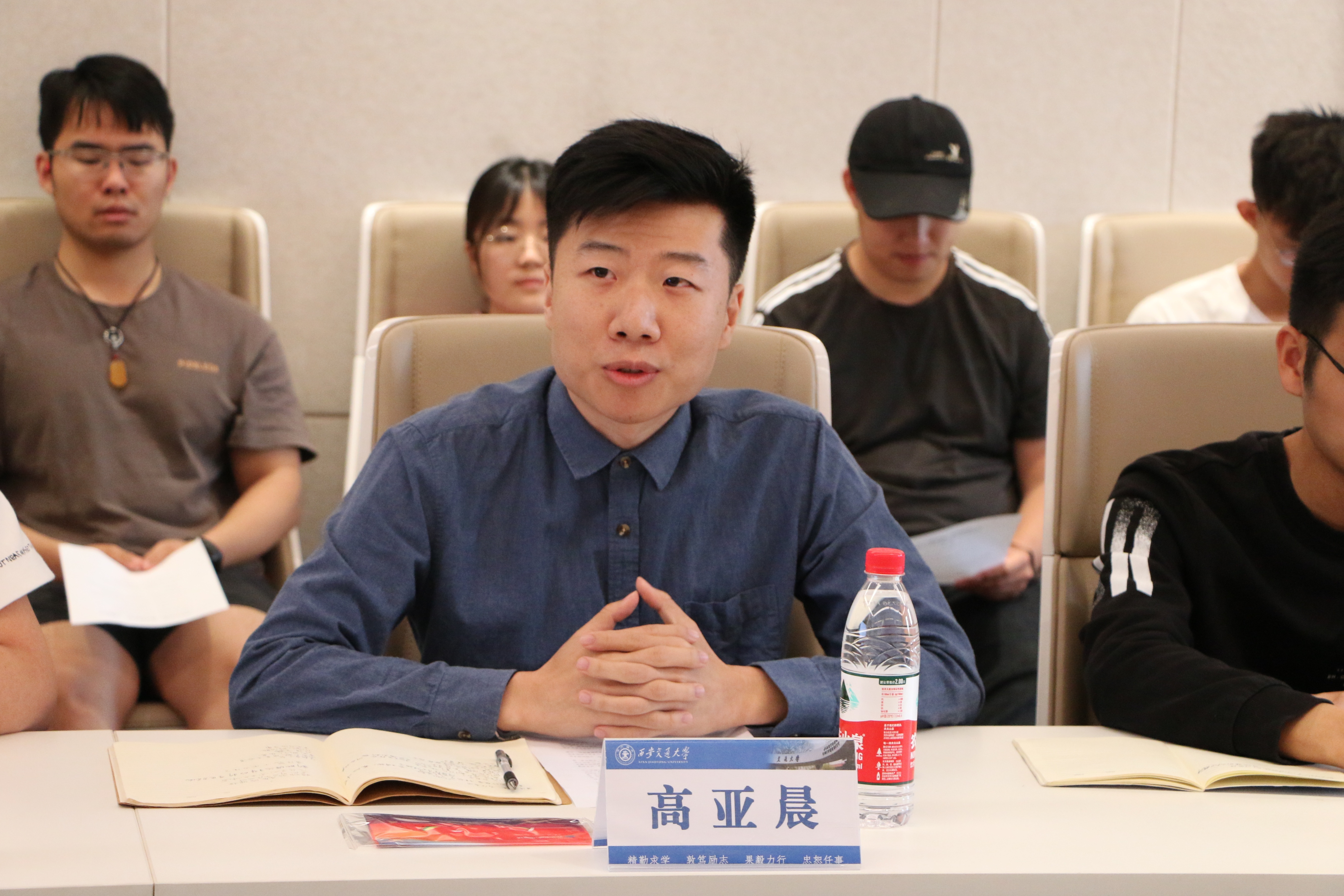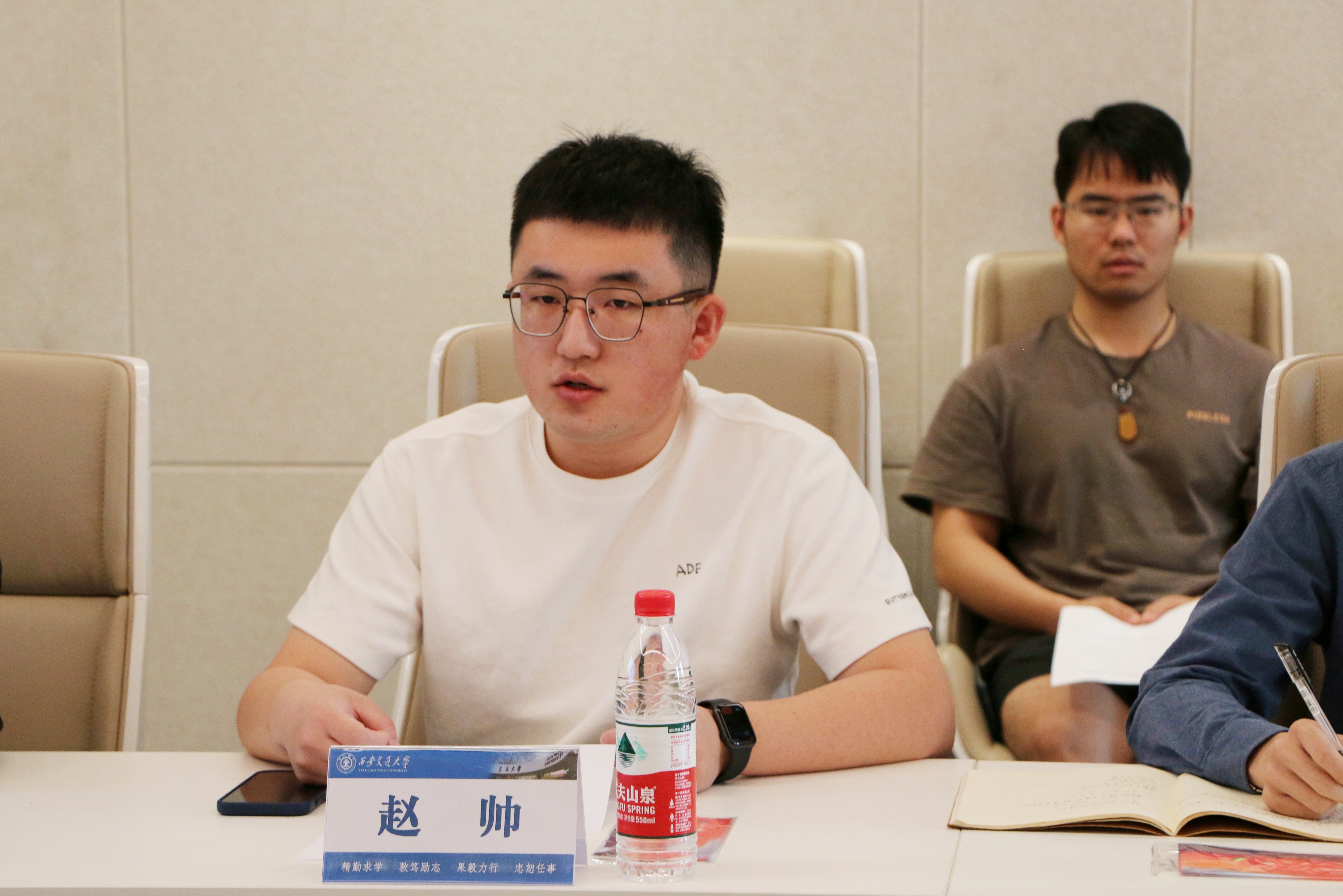 青年教师代表吕泽鹏勉励同学们择业时要多考虑国家发展和民族发展,将职业选择与祖国发展结合,在年轻时努力争先争强,寄语同学们保持初心,持续为国家做贡献;王曙东老师结合个人经历深刻感受到了个人命运与国家命运时刻绑定在一起,希望同学们不负青春,不负韶华,以高昂的精神面貌投入科研学习,以务实的态度进入工作岗位;刘佳老师分享了在日本取得博士学位回国任教的经历,他表示国内的一流企业在很多技术上已经实现了弯道超车,回国解决卡脖子难题,助力国家“双碳”目标早日实现是最好的选择;张润凡老师回顾了多年来大学发展的变化,欣慰于毕业生同学代表们在个人选择上考虑国家需求,展现了使命担当,希望同学们能在走上工作岗位后仍然不忘初心,围绕国家的重大需求努力前行。张晨浩老师感谢了母校的培育,也鼓励同学们与国家的发展同向同行,开展有意义的研究,将论文写在祖国大地上。