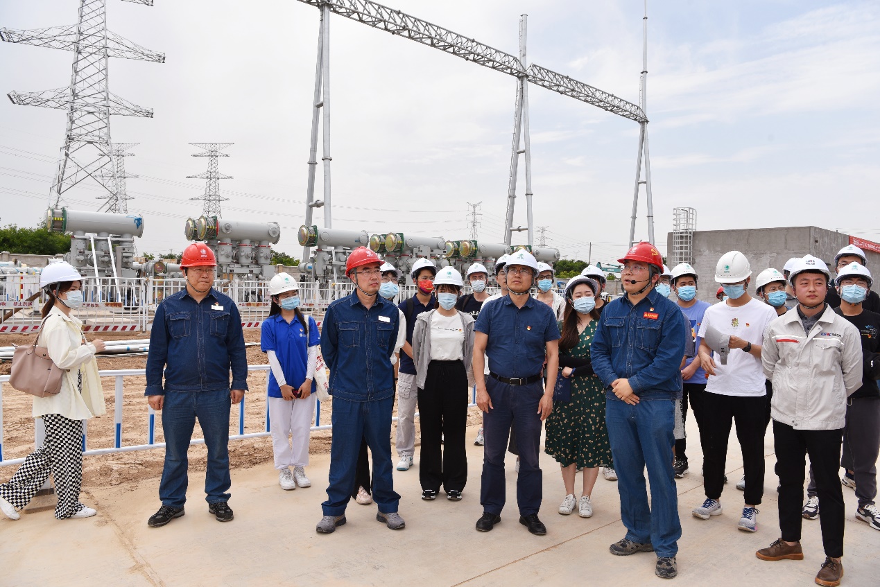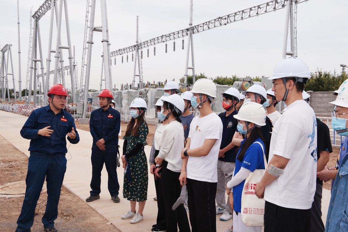 经过相关防疫检查后,各位师生在项目经理范迪的引领下有序参观了咸阳西330千伏输变电工程的建设现状,了解到了工程建设的应用背景及布局规划,同时对施工现场的安全要求和相关设备的基本工作原理有了一定了解,落实了“从书本走入实际”的高校学子培养理念。