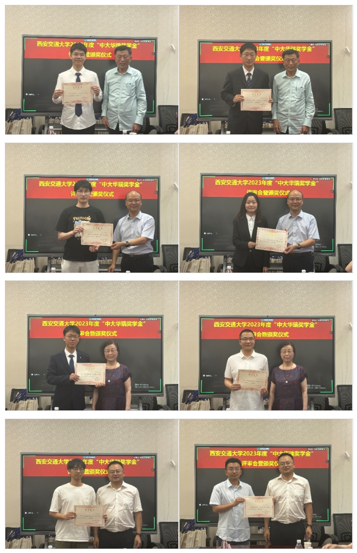 召开“中大华瑞奖学金”评审会暨颁奖仪式,评审委员会主席张克农教授、委员李仰平教授、1997级校友蒋小春(四川中大华瑞能源集团有限公司)、马晓伟、李果(四川中大华瑞能源集团有限公司)、秦慧琳(四川中大华瑞能源集团有限公司),兰萍(四川中大华瑞能源集团有限公司),“中大华瑞奖学金”管理委员会主席宋杰老师、副主任陈玉老师出席会议。评审委员会根据申请人学习情况,创新能力,综合素质,社会实践表现综合评定,最终评选出电测、发电、电机、绝缘、电器、三电、工企、高压方向各1名,共计8名三年级硕士研究生,授予2023年度“中大华瑞奖学金”。