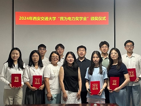 2024年度“民为电力奖学金”评审会暨颁奖仪式举行,评审委员会西安民为电力科技有限公司韩永涛董事长、毕红霞总经理、张静行政总监、张展维工程师参与了评审,奖学金管理委员会主任宋杰书记、副主任陈玉教授出席会议。评审委员会根据申请人学习情况,创新能力,综合素质,社会实践表现综合评定,最终评选出8名二年级本科生及8名二年级硕士研究生,授予2024年度“民为电力奖学金”。经班级自愿申请,学院和书院组织答辩评审后,评选出2个班集体获得“民为电力优秀班级奖学金”。