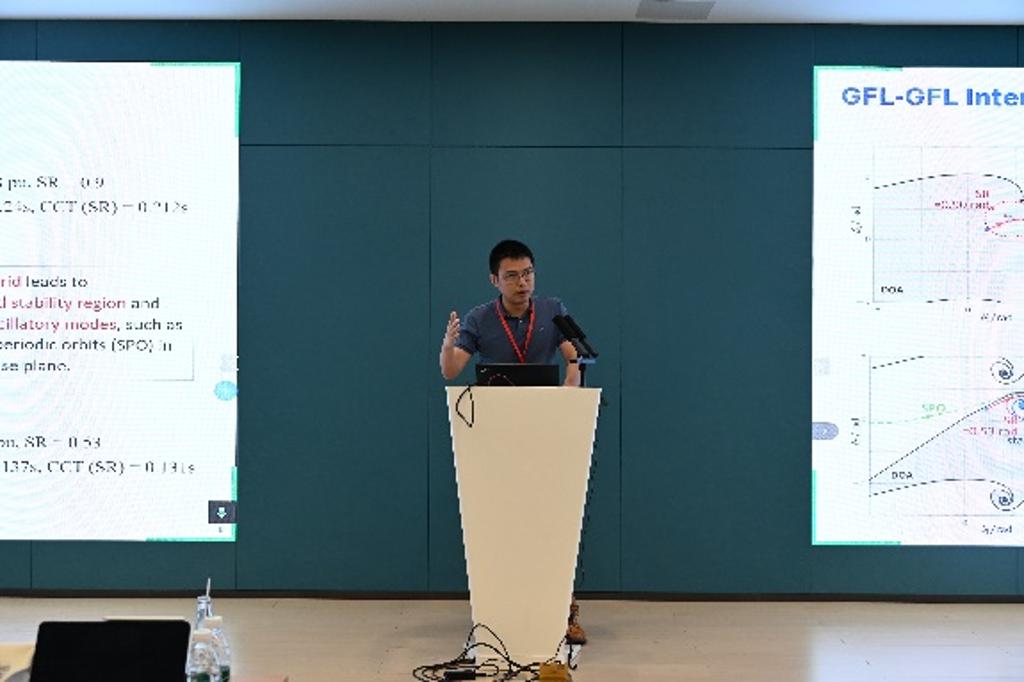 的刘进军教授,就多尺度建模、阻抗分析及稳定性评估等前沿议题作特邀报告。报告围绕小信号稳定性的建模方法、判定标准及大规模应用等核心问题展开,现场互动踊跃。报告后,三位参会代表分享了研究构想,引发了专家与听众的热烈讨论。