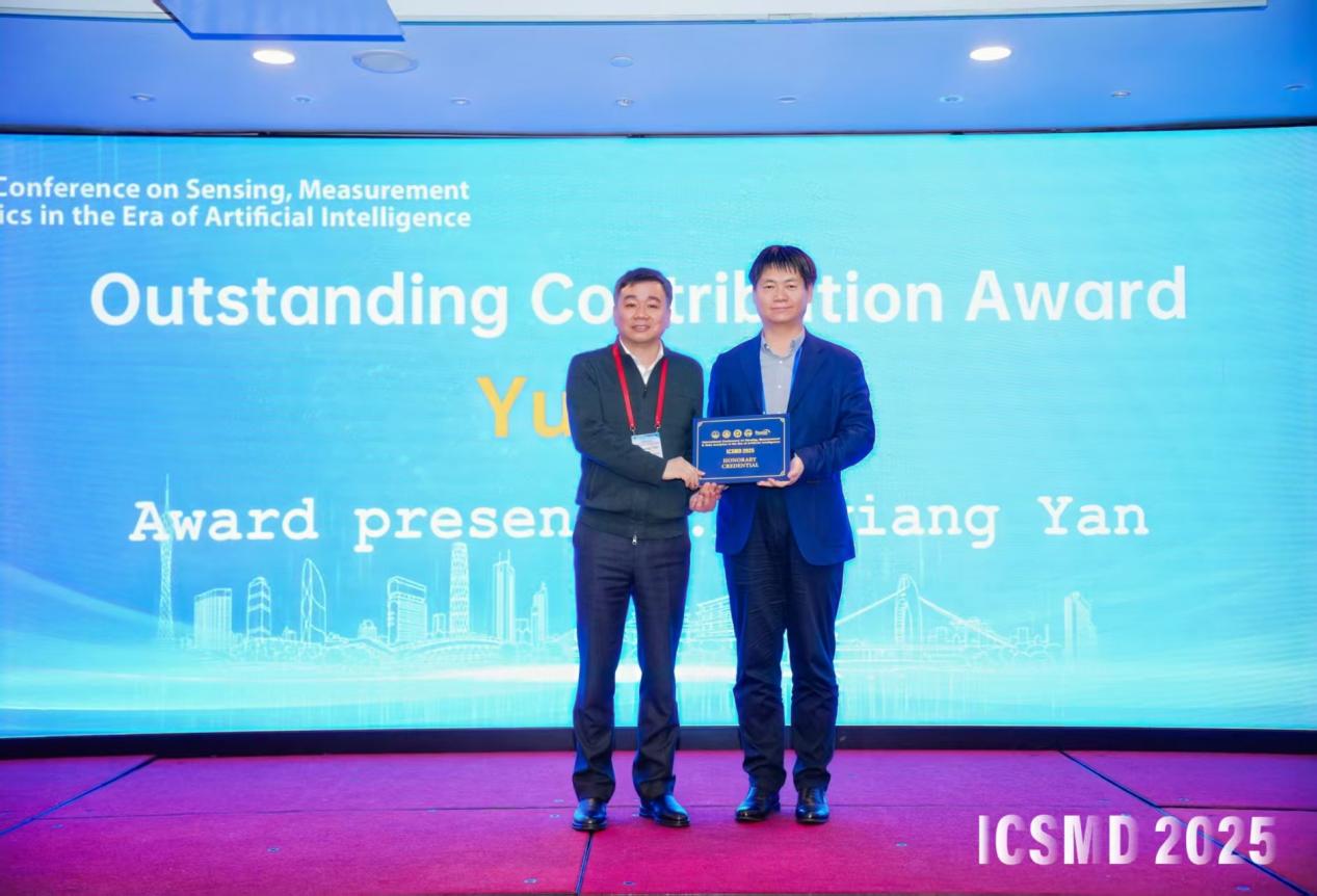 陈玉教授荣获第六届人工智能时代传感、测量与数据分析国际会议大会颁发的“杰出贡献奖”(ICSMD 2025, Outstanding Contribution Award)。会议由IEEE仪器与测量学会主办,华南理工大学承办,是面向人工智能时代的先进传感技术、智能测量方法与数据分析理论搭建高水平国际学术交流平台。