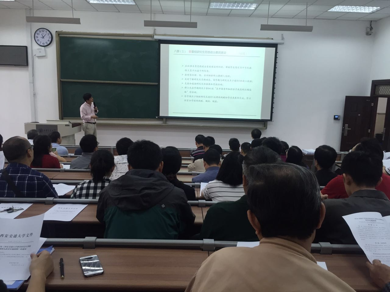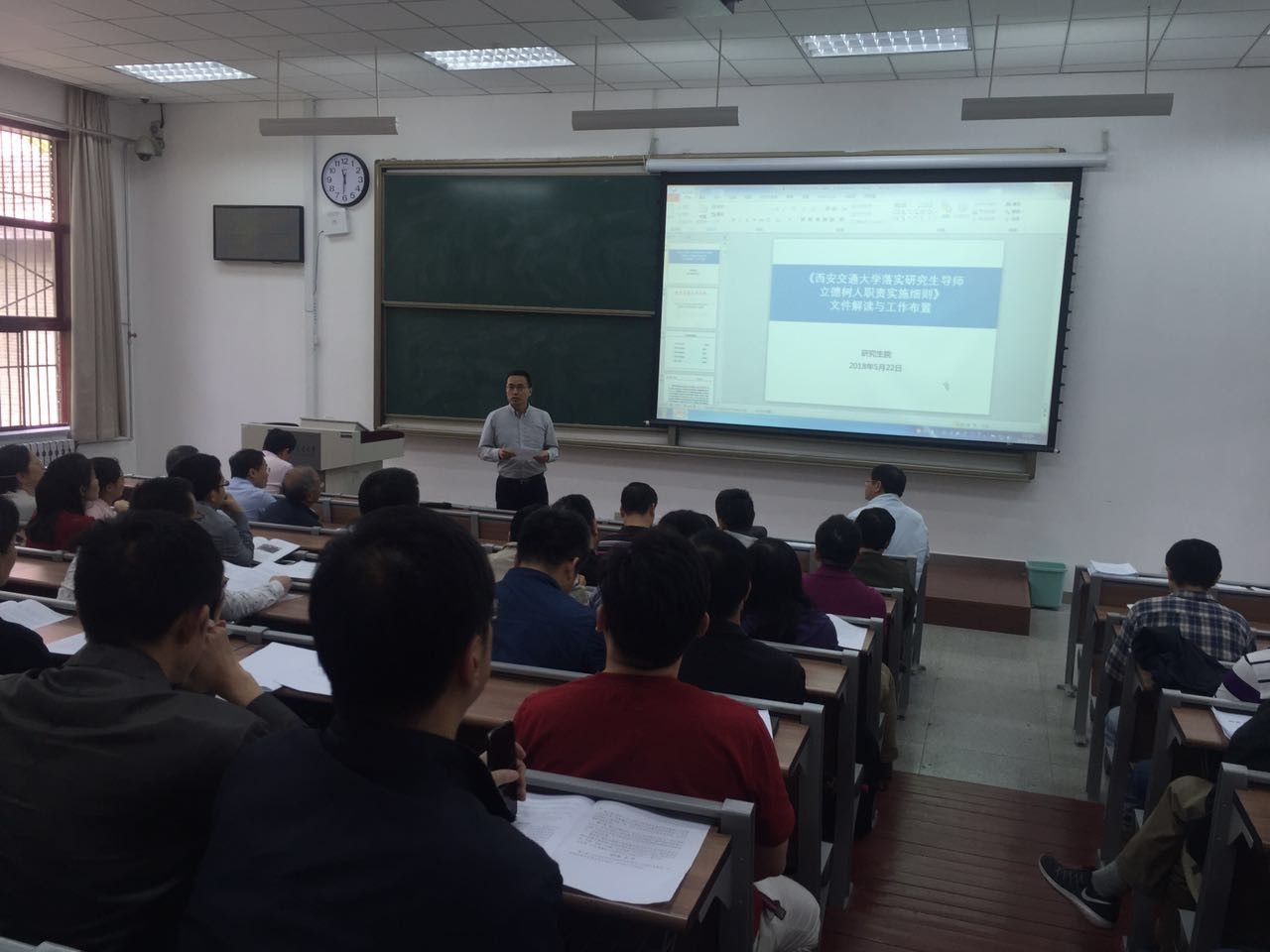 落实研究生导师立德树人职责实施细则》文件。他强调,研究生导师是学生的榜样,教工的楷模,社会风尚的表率,职务光荣,责任重大,负有教书育人的双重职责,既要传授知识,授之以渔,也要注重引导研究生做社会主义核心价值观的信仰者、传播者和践行者。