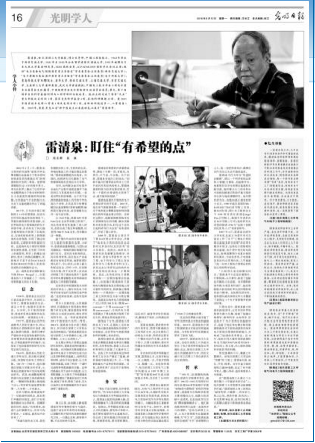 2017年,已当选中国工程院院士14年的雷清泉,在没有任何项目基金资助的情况下,凭着执着探索和思想创新,在世界纳米电介质领域的研究中再谱华章,首次命名了纳元胞及超绝缘体并获得了实验验证,在纳米结构材料上获得极高的击穿强度,实现了通过结构构筑,以调控材料性能的目的。这是纳米电介质研究领域的突破性进展,它突显了时间上的超前性、科学上的概念创新性、技术上的潜在颠覆性,其影响并不亚于在Nature和Science刊物上发表前沿或热点性跟踪性论文。