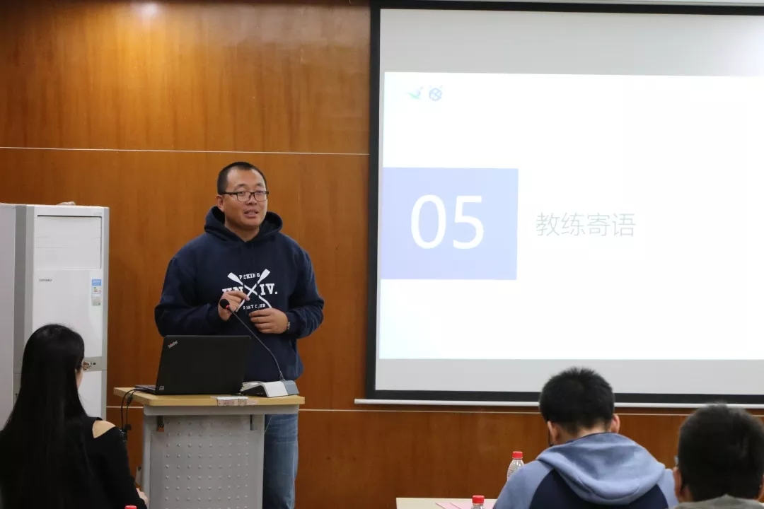 招新推送一经发出,立马得到了广大电气同学的积极相应,在电气研究生会和俱乐部经理人团队的协助下,使得电气赛艇创造交大赛艇队成立之最,成为了建队人数最多的队伍。性别比例的分配,则秉承交大工科优秀传统,男生占据了绝对优势,即便如此,仍然有超过一条八人单桨有舵手的阵容。之后常昊天同学还对赛艇运动的成员和分工进行了介绍,让大家对于赛艇运动的认识增加许多。