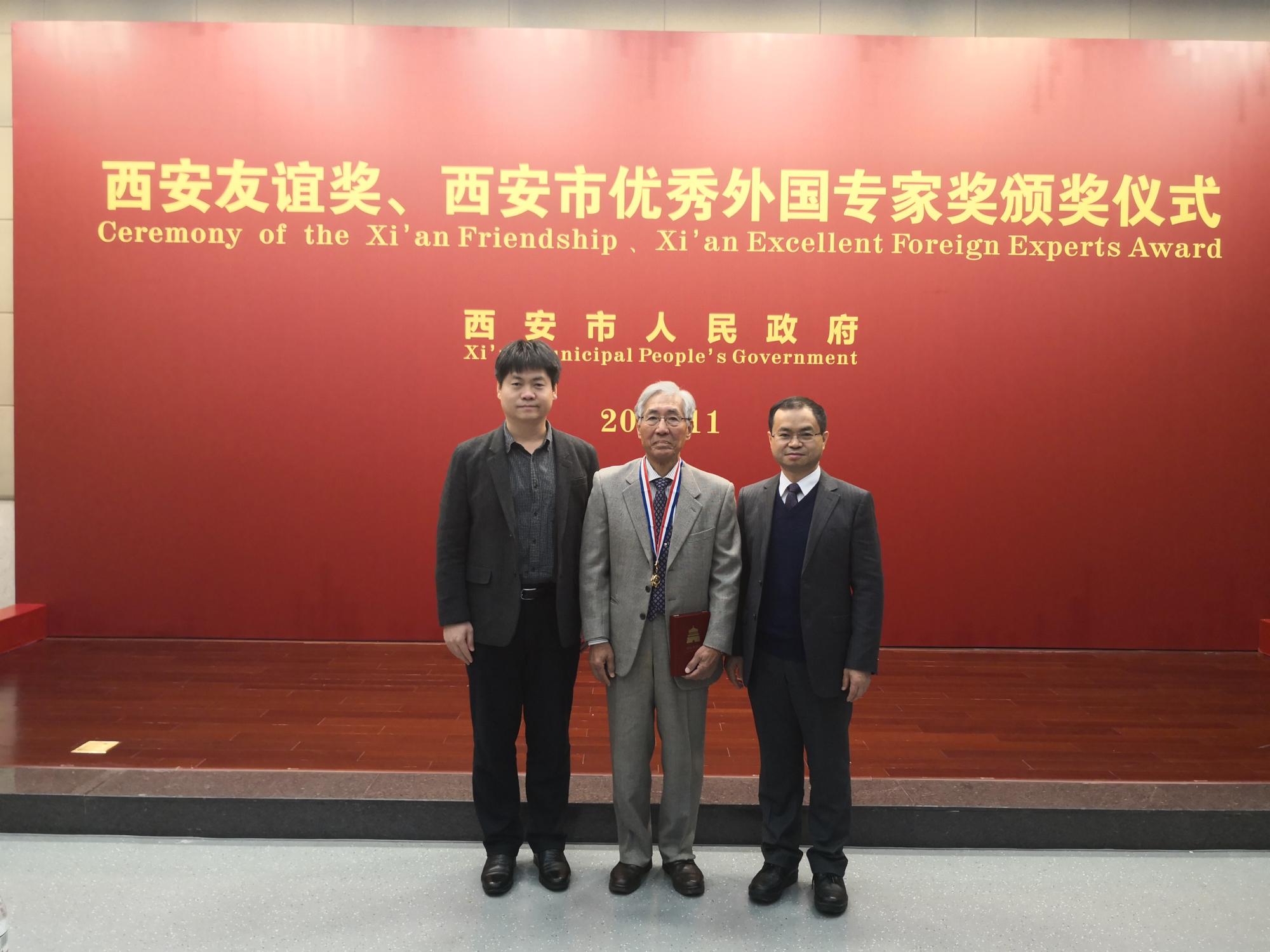 11月6日上午,西安市外国专家局在市政府召开外国专家表彰大会,对于荣获2018年“西安友谊奖”和“西安市优秀外国专家奖”的外国专家给予表彰,我校田中祀捷教授荣获2018年“西安友谊奖”,西安市政府为其颁发证书及奖章。