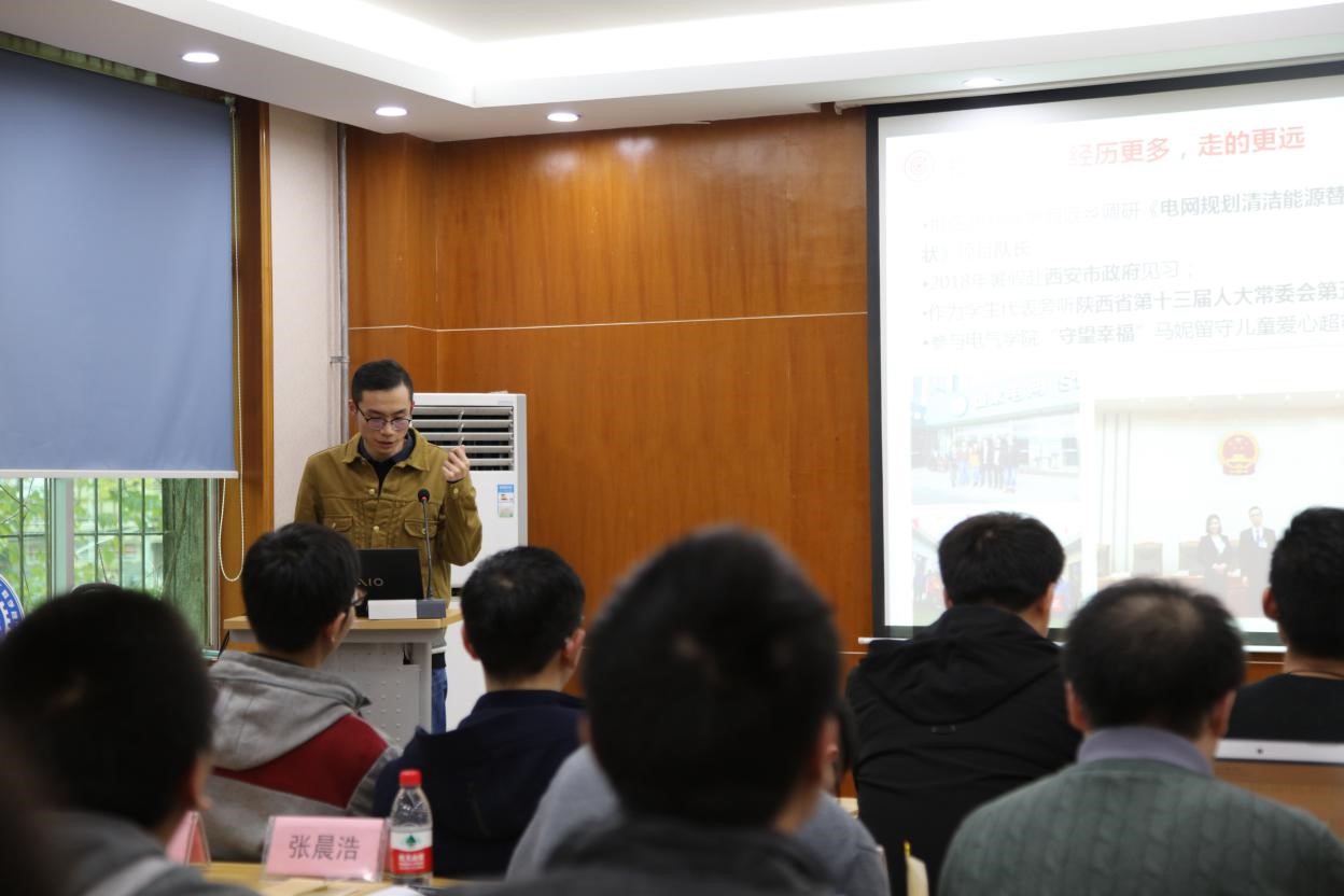 随后,高压专业的王涵同学分享了自己的科研、竞赛、以及社会实践的心得体会。王涵同学建议大家读文献时从综述入手,勤于思考,多与其他同学交流,积极参加学术会议,在科研过程中要做好时间规划,给自己确定的时间节点完成某项任务。接着,同学们就学术竞赛、课程考试等方面提出了自己的疑问,王涵同学一一耐心解答。