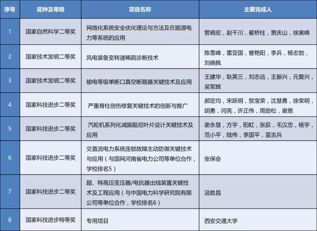 张保会教授参与的”交直流电力系统连锁故障主动防御关键技术与应用“(与国网河南省电力公司等单位合作,西安交大排名第五),汲胜昌教授参与的“超、特高压变压器/电抗器出线装置关键技术及工程应用”(与中国电力科学研究院有限公司等单位合作,西安交大排名第六)分别获得国家科技进步二等奖。