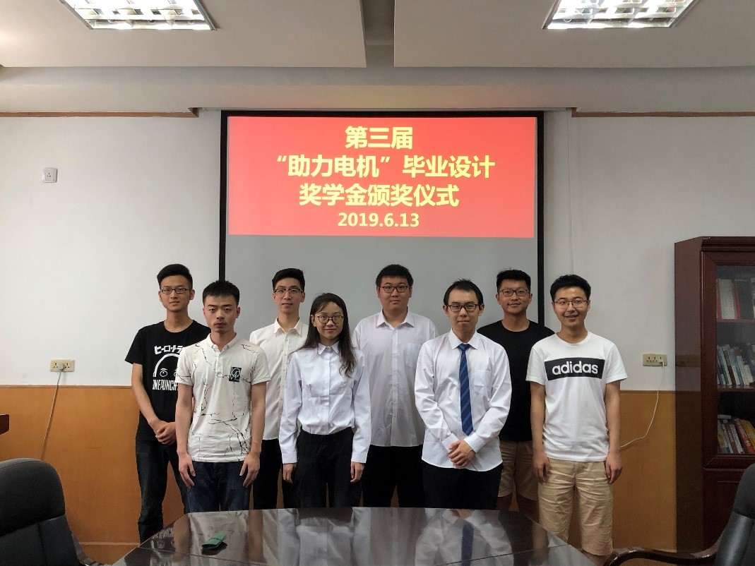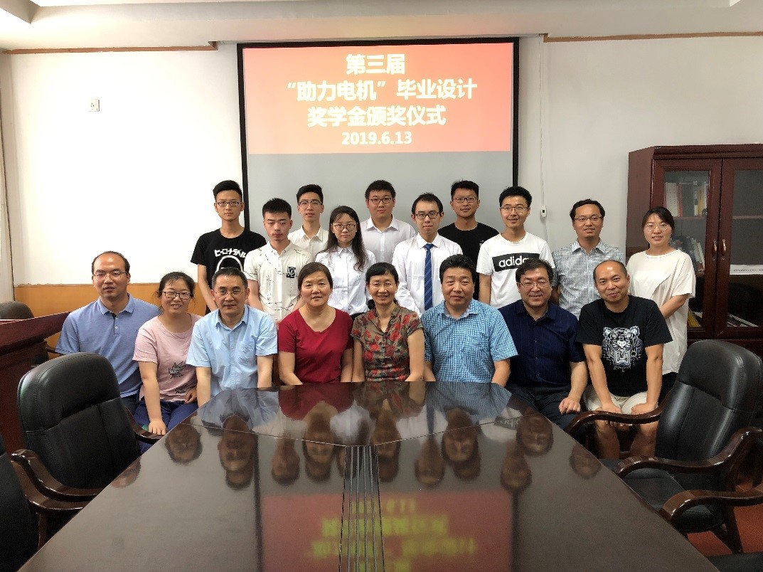 电机会议室举行了简朴而隆重的第三届“助力电机”毕业设计奖学金颁奖仪式,该奖学金由电机专业83级校友集体捐资创立,每年评选一次,用于奖励毕设期间表现优秀的同学。