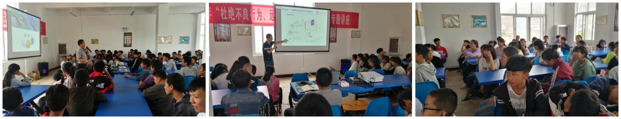 仪器科学与技术学科有了了解,更在孩子们心中播下了走出大山去看世界的种子。王双博士为大家带来了《超越自然的材料——超材料》的精彩报告,600多位师生认真聆听,无不为超材料的特殊性能与在航空军事领域的应用而感叹,无不为报告的精彩而鼓掌。