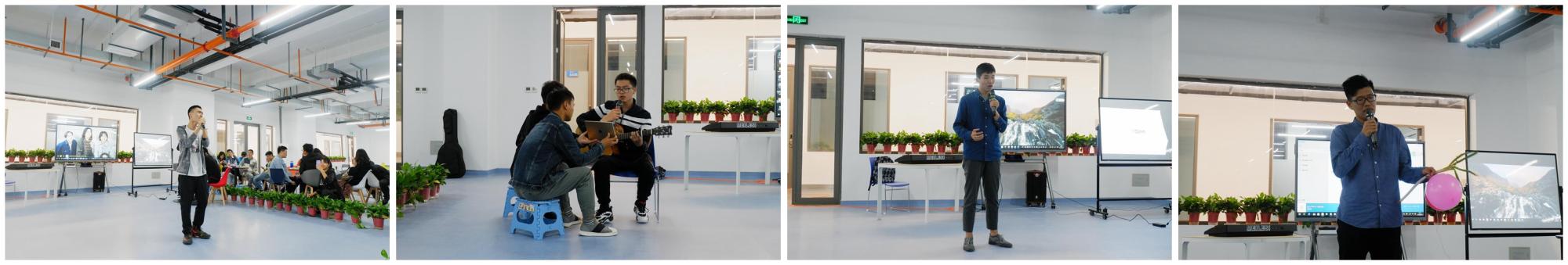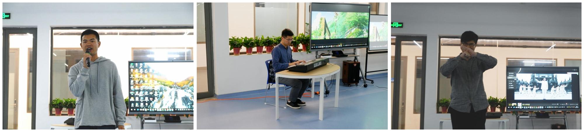 轻松有趣的游戏过后,迎来第三轮的节目。首先,来自9054班的倪正全同学带来经典老歌《海阔天空》,歌名借着“海阔凭鱼跃,天高任鸟飞”,祝愿大家在创新港这片神奇的土地上施展才华、绽放光彩!接着,9047班的叶晟同学带来吉他弹唱《但愿人长久》,在这中秋佳节为我们送上祝福,愿天下人团圆美满、长长久久。现场还有一位男生自告奋勇,上台表演歌曲。这三位男生都不采用伴奏,清唱的功力令人称绝。