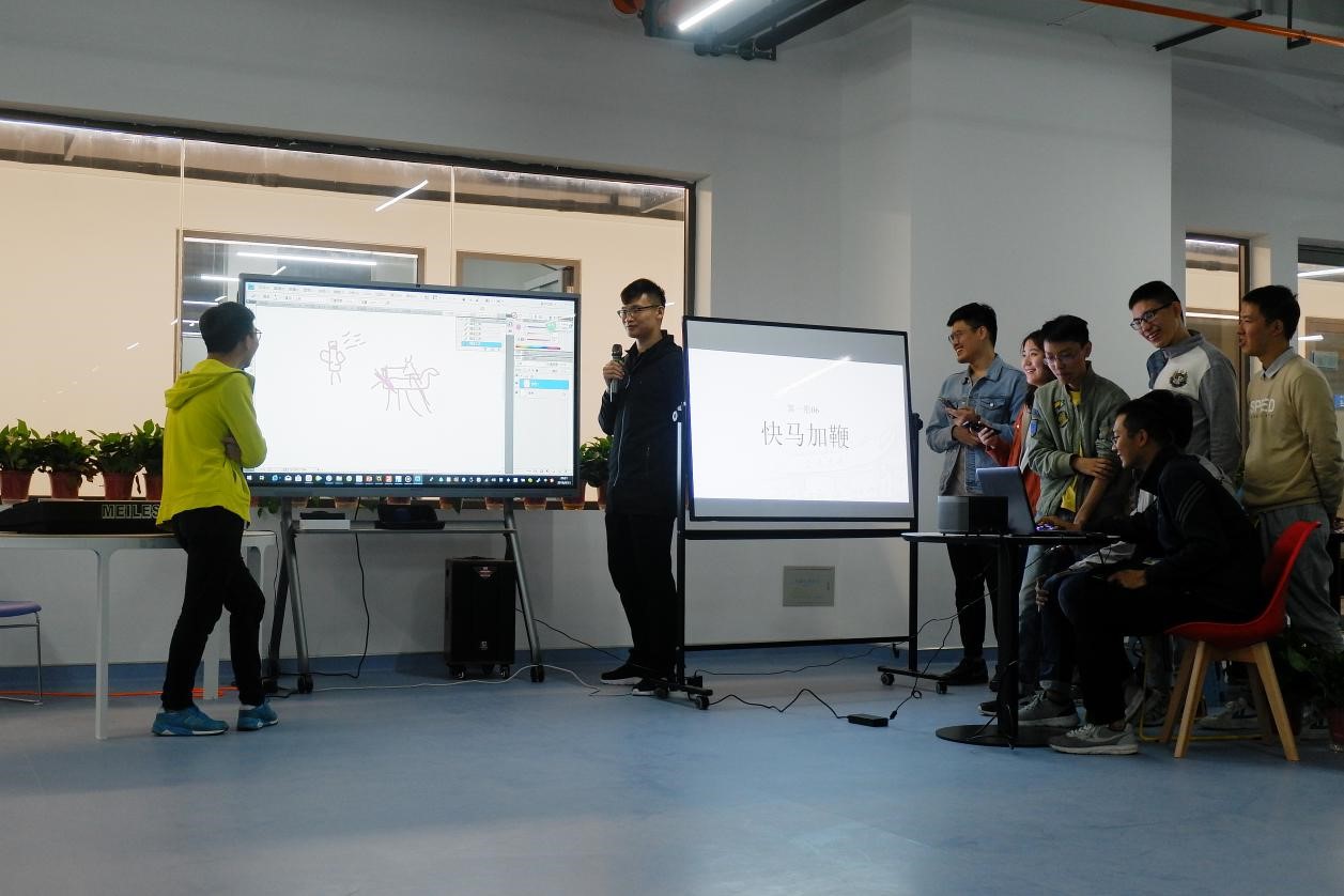 欢乐继续,开始了第二轮紧张又刺激的游戏环节:你画我猜。这个游戏由9042和9043班策划,引入了“电气”元素,设置题目如“自耦变压器”等电气名词。现场报名十分踊跃,共有5组同学,合计10名同学参加游戏。此次游戏,给我们展示了电院同学们别出心裁的脑洞、天马行空的想象力和精湛幽默的绘画技术。