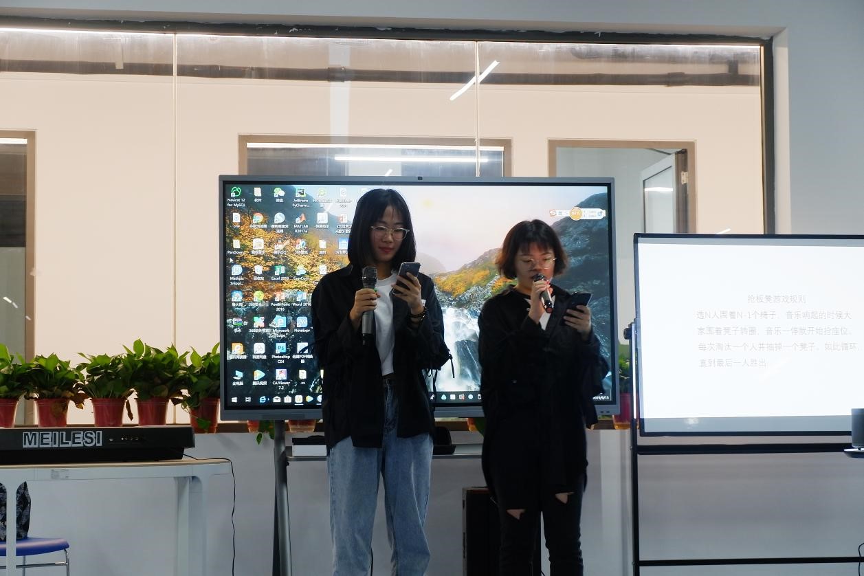 听完歌曲,我们开始了第一场由9045班的同学带来的游戏:抢凳子。一共两轮比赛,12名同学参加游戏。凳子守卫战可不容易,得时时刻刻留意音乐和对手,抢先占据属于自己的凳子,并保证不被别人给挤下去。音乐一停,每当有两个同学坐上同一个凳子,其中一个被挤出去时,就是在下面看的同学们笑得最开心的时候了。