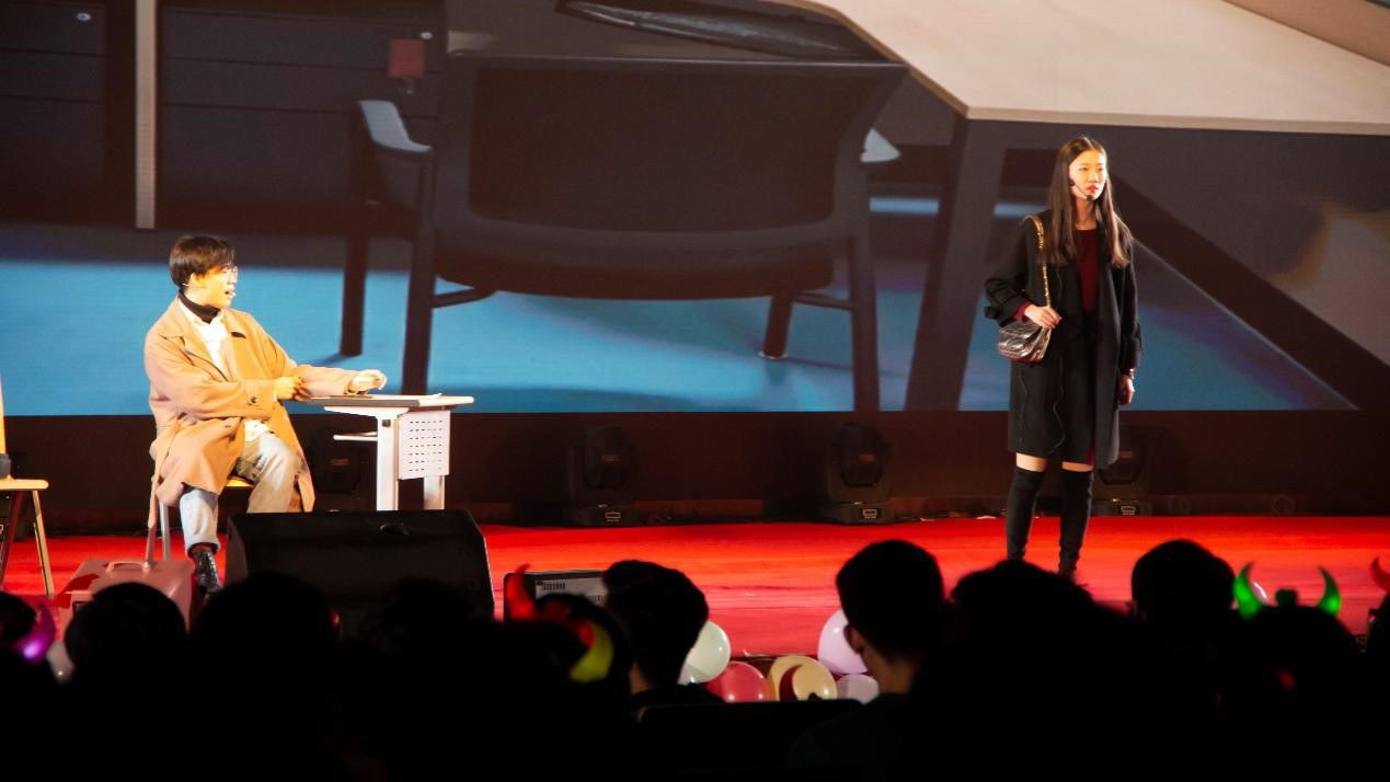 舞台剧《新港之约》中,师生共同参演,以新颖的表演形式引来笑声阵阵,结合在港生活实际,展现了新港学子积极向上的精神面貌。