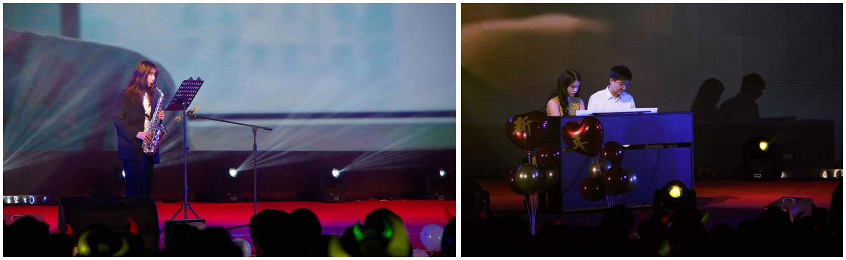 舞蹈队带来的《beat it & attentiion》和动感的RAP 《we are young》以炫酷的舞姿和强烈的节奏感为第二篇章拉开了序幕。器乐演奏卡农奏鸣曲在静谧的氛围中融化;歌曲《爱,有点甜》以耳熟能详的歌曲串烧把大家的情绪推向高潮。