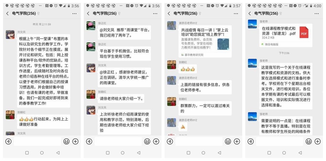 “根据‘同一堂课’布置的本科以及研究生教学工作,学院针对各个细节正在摸底,展开讨论和研究。包括:各种网上授课平台/软件的优缺点、培训方式、学生考勤管理等;具体工作进度,后续随时向老师介绍各种在线平台的特点,以便于老师们根据自己的授课习惯选用,并做好集中培训!也请有课的老师,早做准备,我们一起完成好即将到来的春季教学工作!”