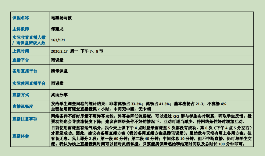 面对全新的挑战,学院班子反复讨论,强调全院教师做多手准备,以防万一。选用备选方案的同时,一定要保持和学生的实时互动,并将问题及时上报。