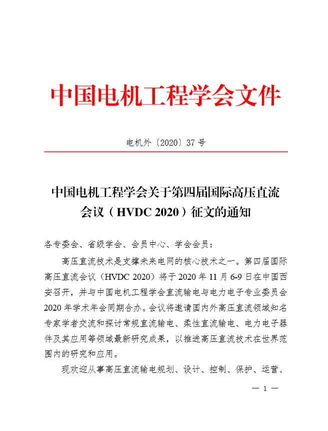上一篇:中国电机工程学会直流输电与电力电子专业委员会关于2020年学术年会征文通知