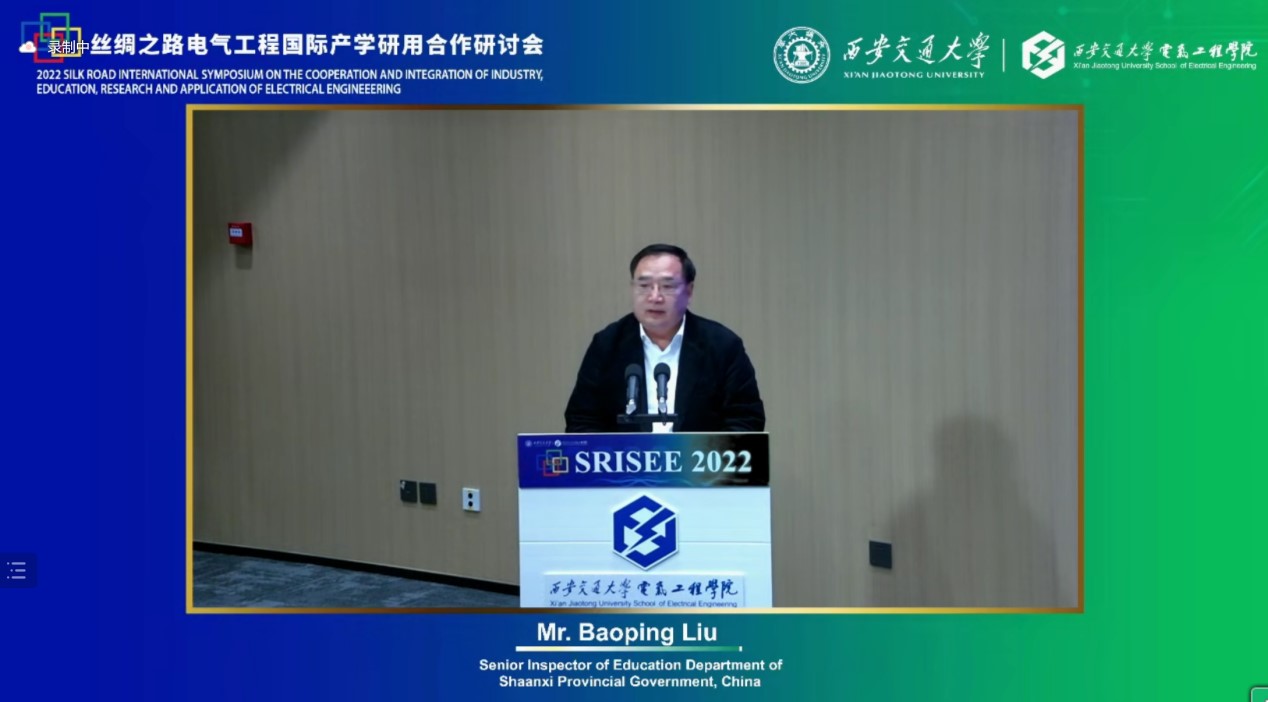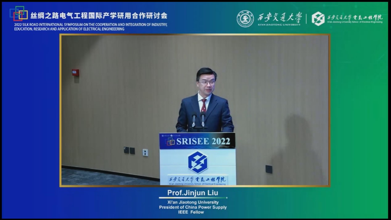 On Nov. 13, 2022 Silk Road International Symposium on the Cooperation and Integration of Industry, Education, Research and Application of Electrical Engineering (SRISEE 2022) which was organized by the Education Department of Shaanxi Provincial Government and Xi’an Jiaotong University, was held at the i-Harbor and Online. The symposium was hosted by the National Center for Schooling Development Programme, and it is supported by Ministry of Education of the People’s Republic of China and Shaanxi Provincial People’s Government. Academicians and authoritative experts in the field of electrical engineering from more than 10 countries, including China, USA, UK, Denmark, Italy, Japan, Australia, Singapore, Korea, India, etc., were invited to give speeches during the symposium. The topic of the Symposium is to explore international cooperation in higher education, scientific and technological development and industrial transformation in the field of electrical engineering aiming at the new power system construction.