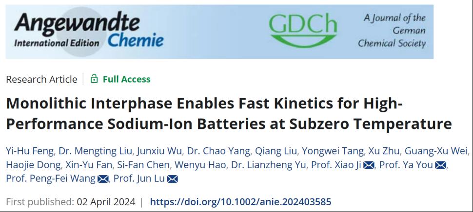 该研究成果以《整体式电极/电解液界面促进低温下钠离子的快速传输》(Monolithic Interphase Enables Fast Kinetics for High-Performance Sodium-Ion Batteries at Subzero Temperature)为题,发表在国际顶尖学术期刊《德国应用化学》(Angewandte Chemie International Edition)上。黄瓜视频