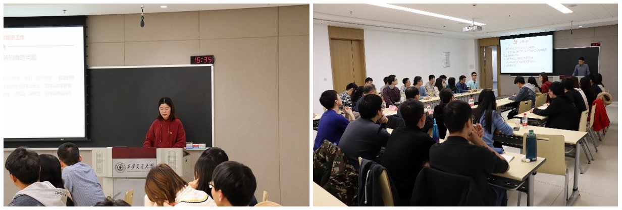 硕9043支部书记李伊濛分享了中共中央政治局召开分析研究2020年经济工作和研究部署党风廉政建设和反腐败工作会议内容。从当前形势怎么看、面对问题怎么办、下步工作怎么干三个关键问题介绍2020年经济工作的分析研究,表示在以习近平同志为核心的党中央坚强领导下,在党领导经济工作的制度优势下,在全国人民的齐心协力下,我们一定能战胜前进道路上的艰难险阻,中国特色社会主义道路越走越宽广,圆满完成2020十三五“收官之年”既定目标。
