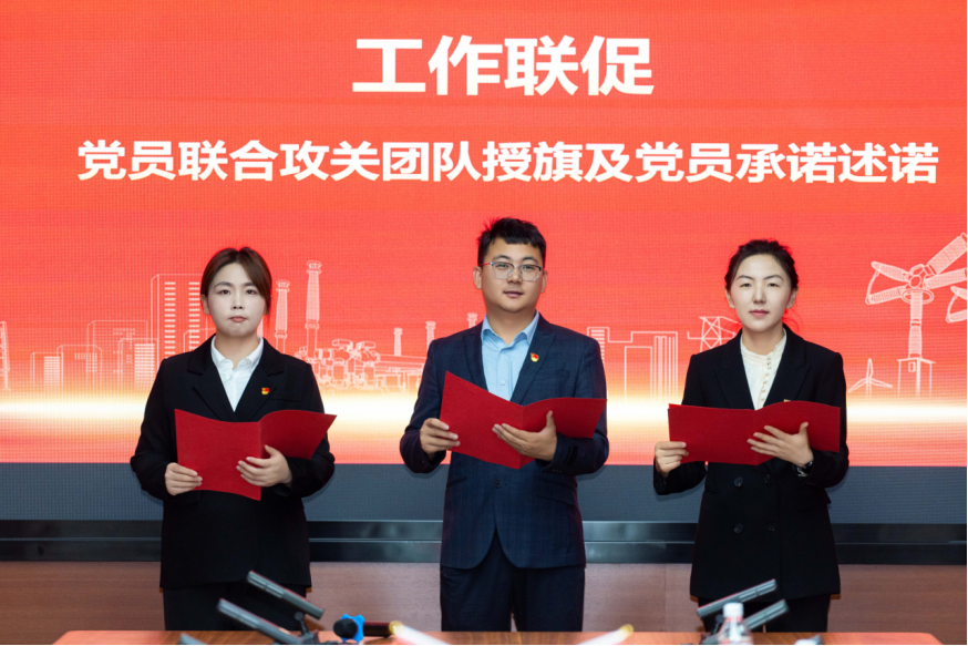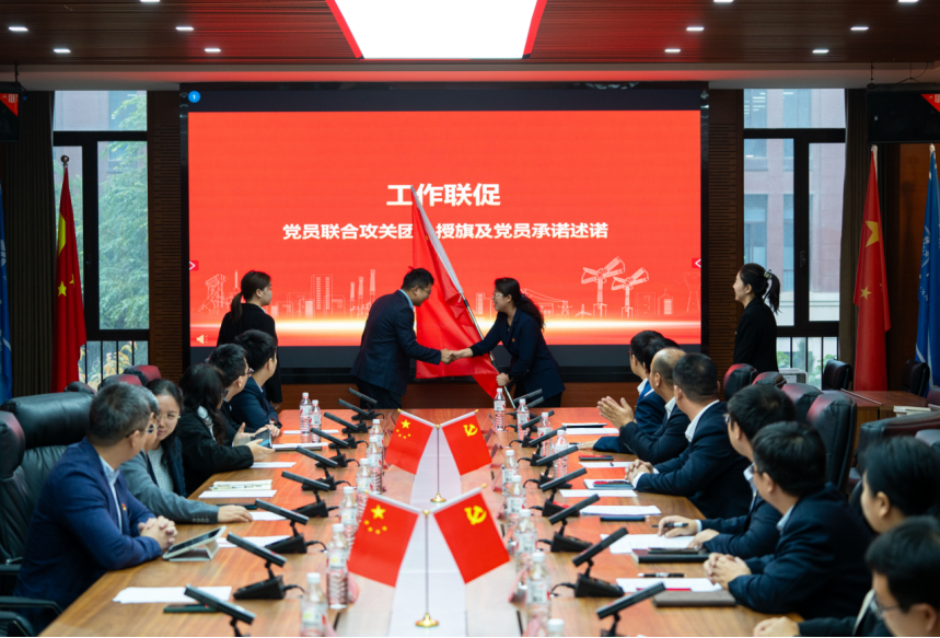 梁得亮书记在致辞中充分肯定了平高西安交大联合研究院的贡献。随后三方签订联建共建协议,互赠书籍开启“组织联建”,并重温入党誓词进行“党员联育”,共同学习教育科技人才体制机制一体化改革理论知识促进“理论联学”,王砚玲主任为党员联合攻关团队授旗、攻关团队党员进行现场承诺述诺开展“工作联促”。