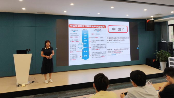 马克思主义学院教授李秀珍围绕《从关税战看中美关系》开展主题党课,从国际形势与宏观经济角度,剖析中美关系中的政治博弈与国家战略,引导同学们以更加理性和辩证的视角看待国际局势,提升政治判断力和战略思维能力。