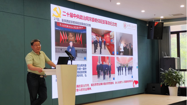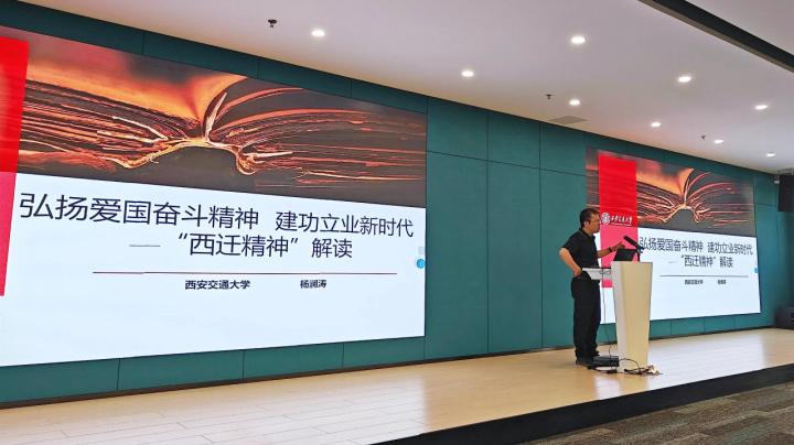 校史与大学文化研究中心研究员杨澜涛则以《党的意志和西迁精神》为题,结合交大西迁历史,深情讲述了老一辈知识分子肩负国家重托、胸怀家国大义、扎根西部育才的动人事迹,深刻诠释了“听党话、跟党走”的精神血脉与西迁精神的时代价值。