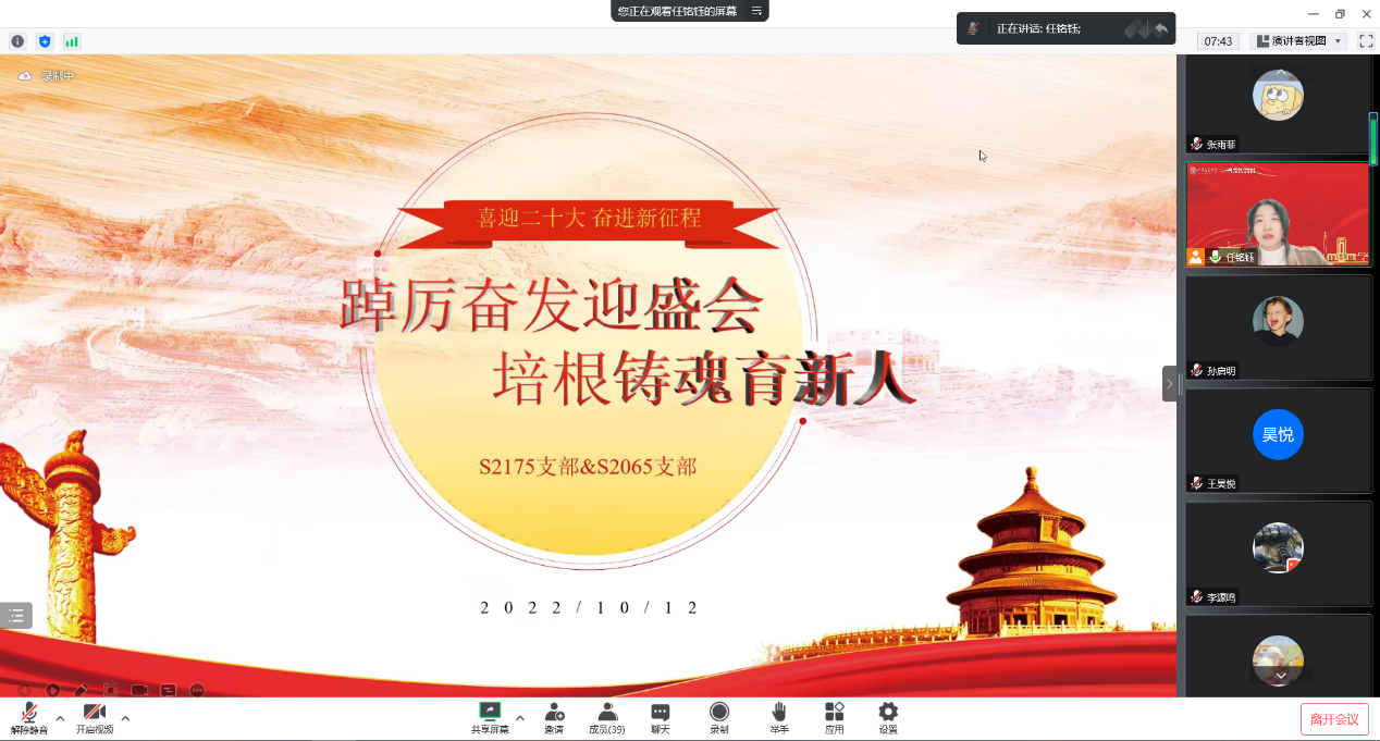 硕2065党支部、经金学院硕2175党支部和召开了以“踔厉奋发迎盛会,培根铸魂育新人”为主题的联学共建专题组织生活会。
