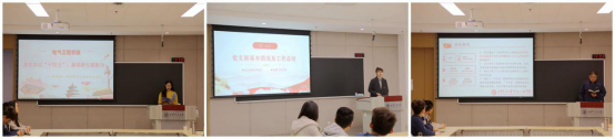 硕0046党支部书记杨欣颐介绍党支部基本情况,汇报支部近期工作。开学以来,党支部认真落实“三会一课”制度,丰富组织生活内容,以“承家国好传统,书历史新功绩”为主题,开展了“文明餐桌”志愿服务,带领本科生走进实验室、点燃科研梦,采访新港师生、书写“思源景事”故事集等一系列支部建设活动,从点滴出发,努力实践“新港新生建新功”。