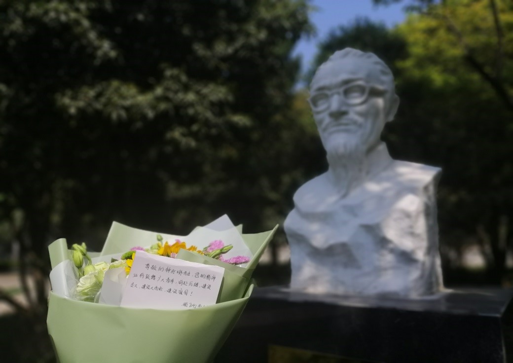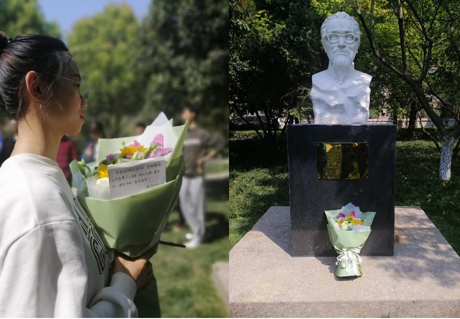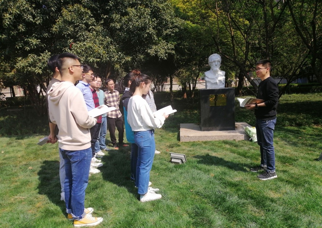 最后,全体党员肃立在钟兆琳先生雕塑前,支部书记高鑫为大家朗读了花中的寄语:“尊敬的钟兆琳先生,您的事迹必将鼓舞广大青年,前赴后继,建设交大,建设西北,建设祖国-硕7042党支部全体党员”怀着无比崇敬的心情,积极分子王宁将支部准备的鲜花,端放在钟兆琳先生雕塑前,也正像寄语所言,硕7042党支部全体成员定会传承好钟老先生艰苦朴素的作风、无私奉献的精神、舍小为大的家国情怀,努力奋斗,为交大新的西迁、为交大双一流建设的推进贡献自己的力量与智慧。