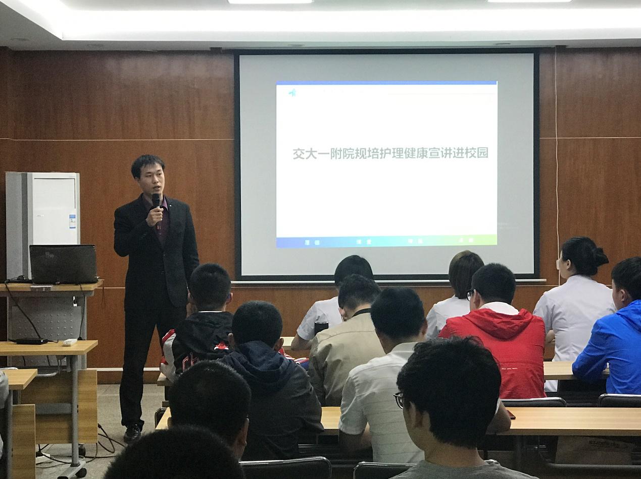 随后,硕7049班组织宣传委员李国强同学介绍了本次到会嘉宾,他们分别是交大一附院的卢强医生、任璐护士、朱虹阳护士、李田甜护士和柳丽护士,介绍完毕后在大家热烈的掌声中,宣讲会正式开始。