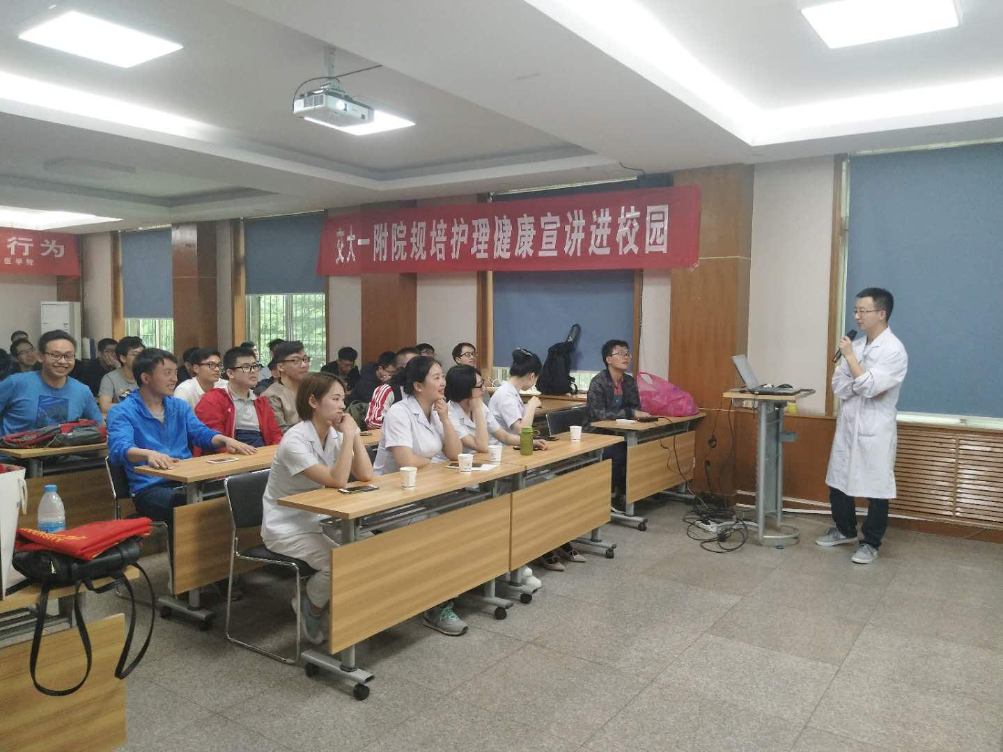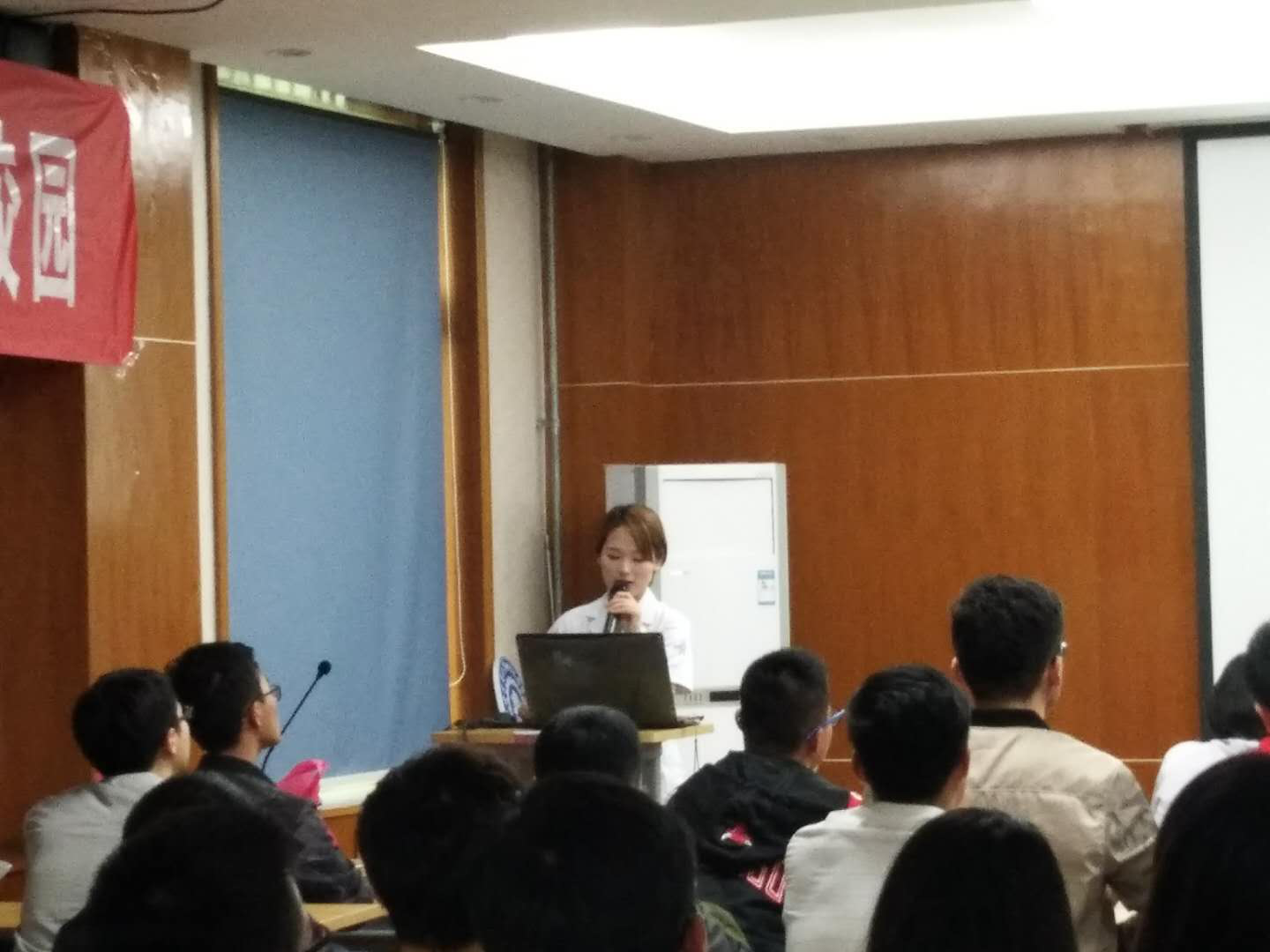 首先,朱虹阳护士向大家介绍了生活中常见的外伤处理。针对烫伤、扭伤、抽筋和外伤出血这四种情况,结合具体的病例分析,生动讲解了不同情况下的科学的处理方法,并且强调不要迷信偏方土方,及时就医。最后她分享了自身的体会,认为人生最重要的三件事是:岁月静好,懂得感恩,与你相随,这获得了在场同学的一致认可。