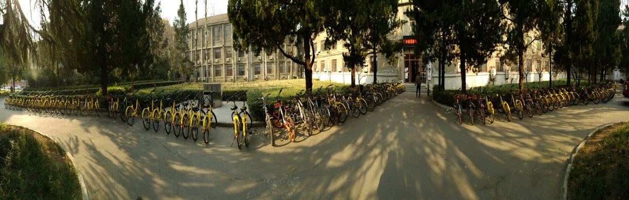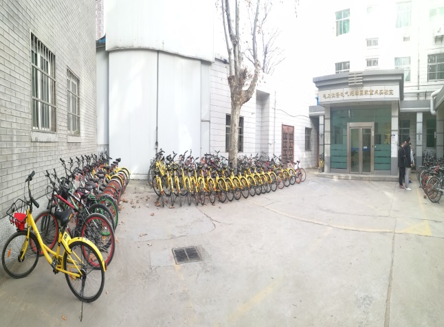 、绝缘楼、食堂附近,与之前的乱停乱放、杂乱无章形成的不协调、不美观成对比的是一排排整齐停放的自行车所带来的视觉享受。