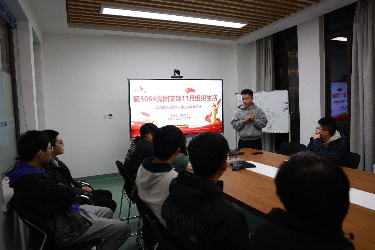 S3064党团支部于11月18日组织开展了以“学习贯彻党的二十届三中全会精神”为主题的组织生活。会议由党支部书记王奕淳主持。