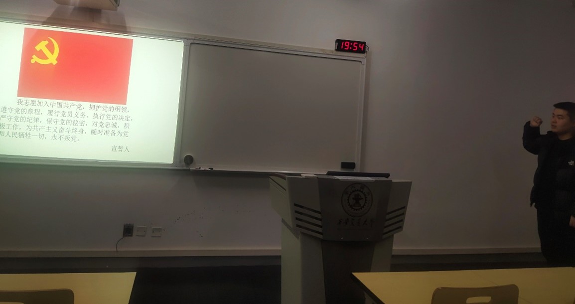 在支部书记段云康同志的带领下,硕2074党支部全体党员重温入党誓词,全体党员面对党旗,再次举起自己的右手,字字铿锵重温入党誓词,“我志愿加入中国共产党,拥护党的纲领,遵守党的章程……”提醒自身始终铭记对党的事业所应承担的责任,坚定共产主义理想信念,继续发挥模范带头作用。