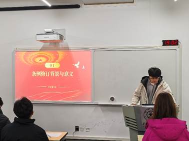 活动第一项进行了《中国共产党纪律处分条例》的学习。朱安齐同志从条例的修订背景、重要意义入手,详细阐述了此次修订的主要内容和特点。他指出,此次修订是贯彻落实党的二十大精神的重要举措,进一步严明了党的纪律,为全面从严治党提供了制度保障。新修订的《条例》在政治纪律、组织纪律、廉洁纪律、群众纪律、工作纪律、生活纪律等方面都有了更明确的规定和更严格的要求。通过结合实际案例,朱安齐同志生动形象地解读了各项纪律规定,使支部成员对条例有了更深入的理解和认识,明确了在今后的学习和生活中应遵守的行为准则,时刻保持纪律意识,自觉遵守党的各项规定。